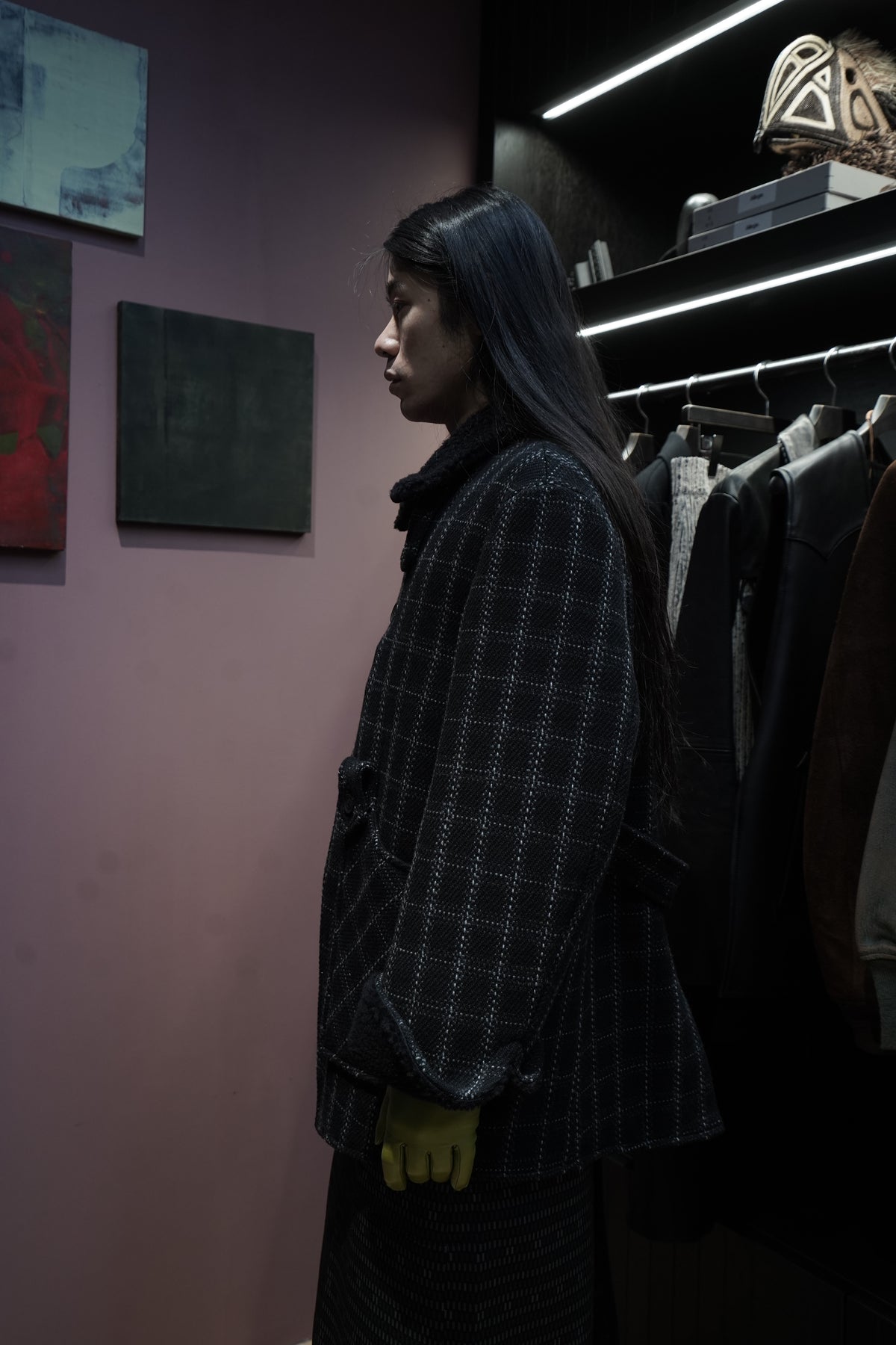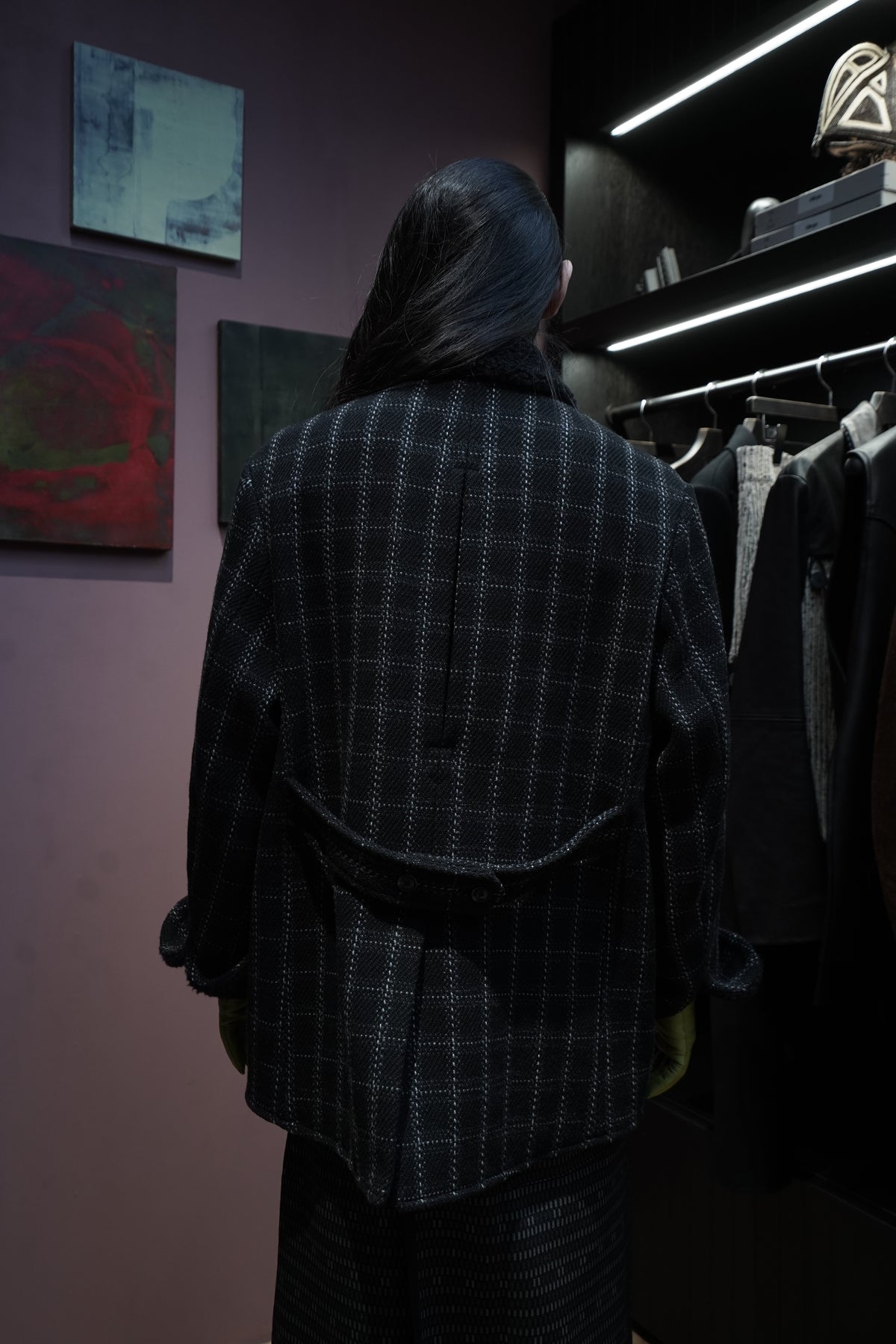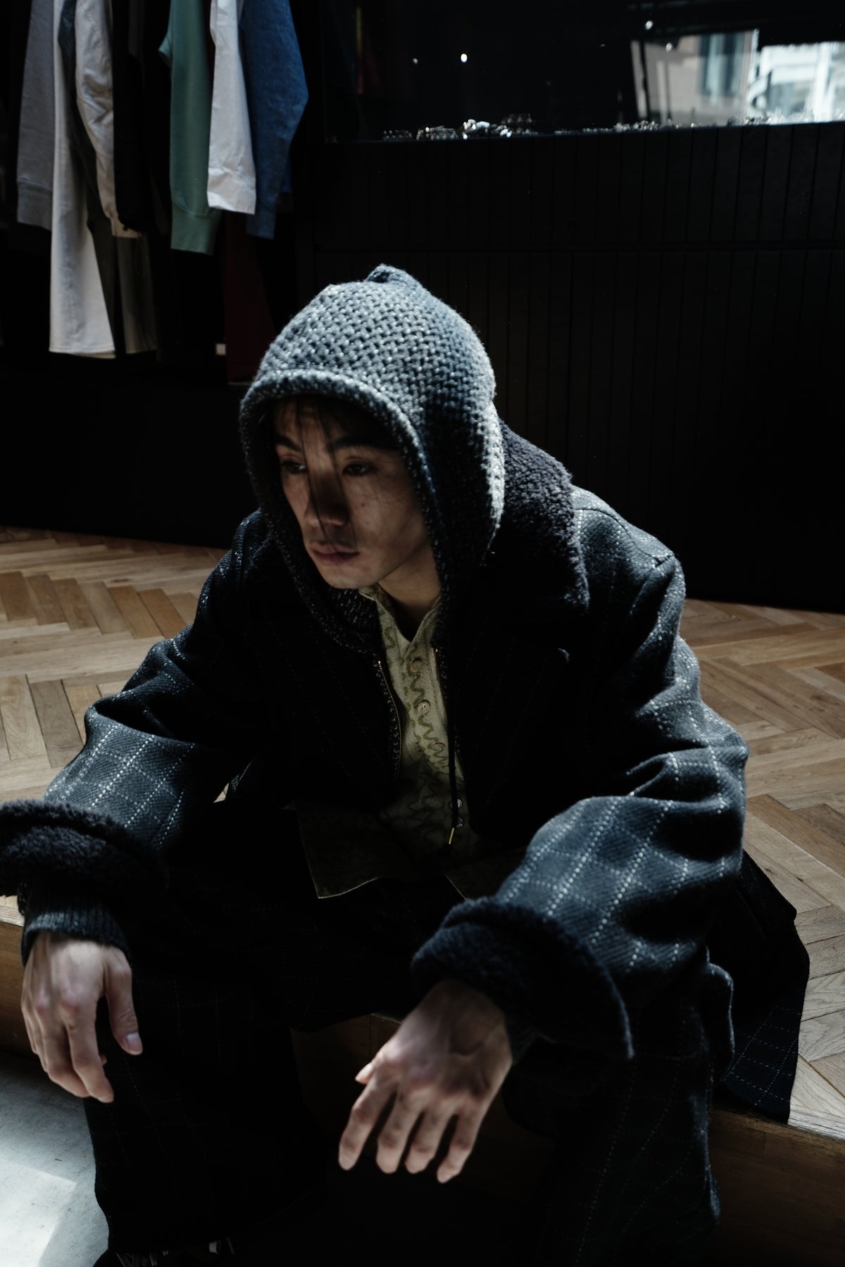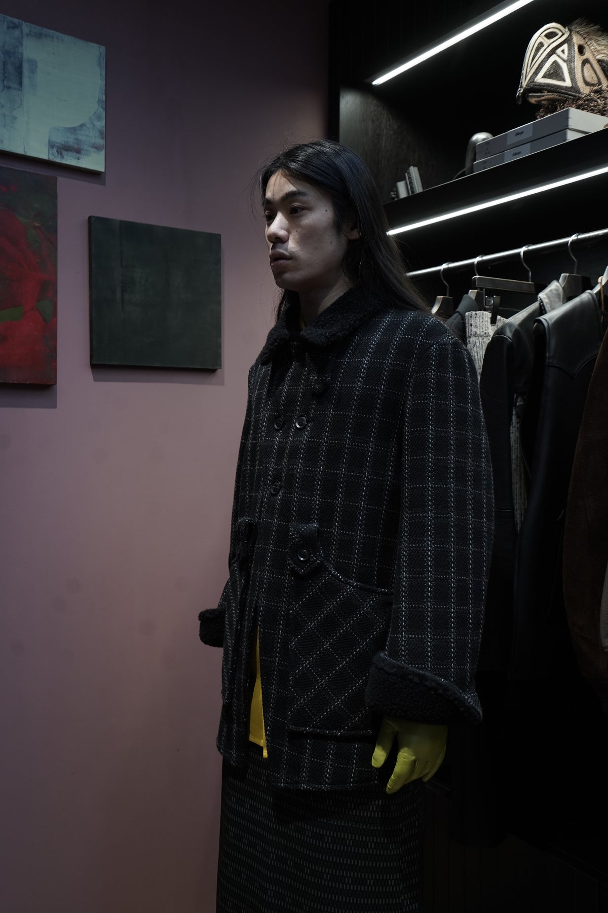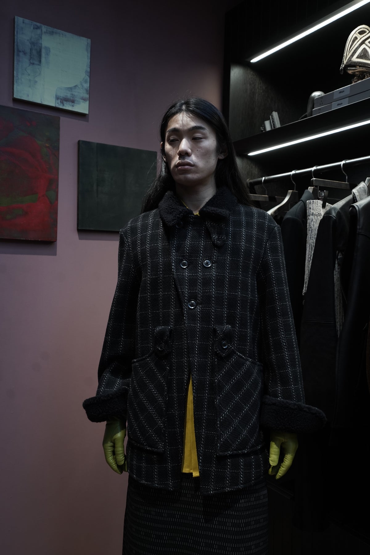 Based on the Nazca civilization spring technique linked to this season's theme.An original tweed fabric woven with the image of a diagonal twill weave.The Used and tailored coat. While creating volume by twisting 4 strands of 1/10Craftsmen carefully weave it so that the surface looks beautiful. On the collar and cuffsMade of 100% wool boa. Lapel can be worn closed or open It's a pattern. The collar can be raised and fastened with a chinstrap.It can be worn in a variety of ways. This coat symbolizes this season.