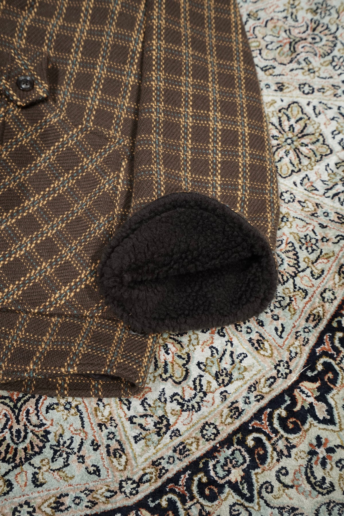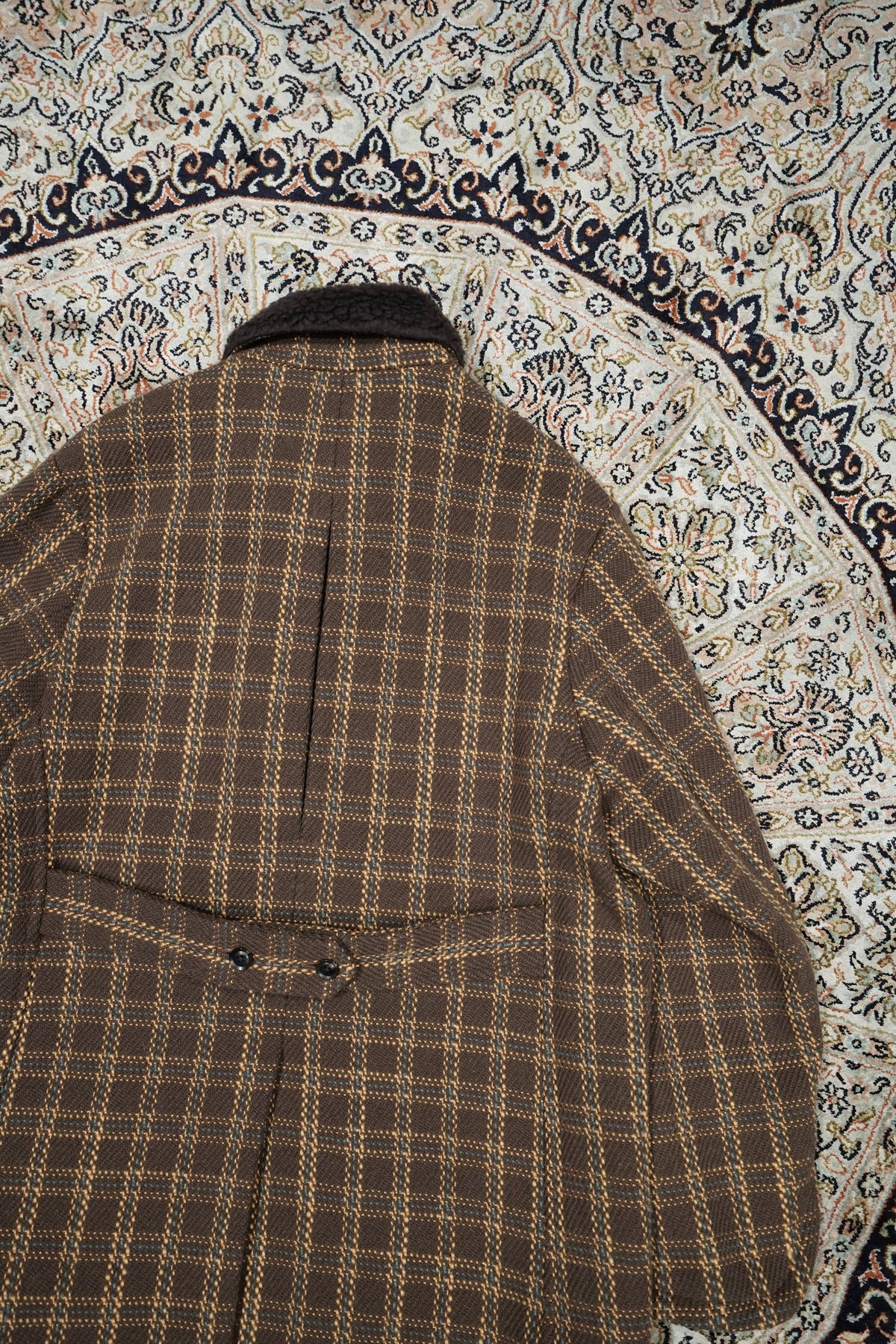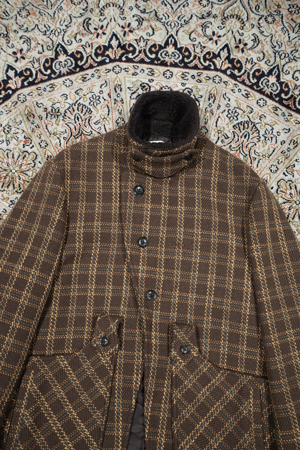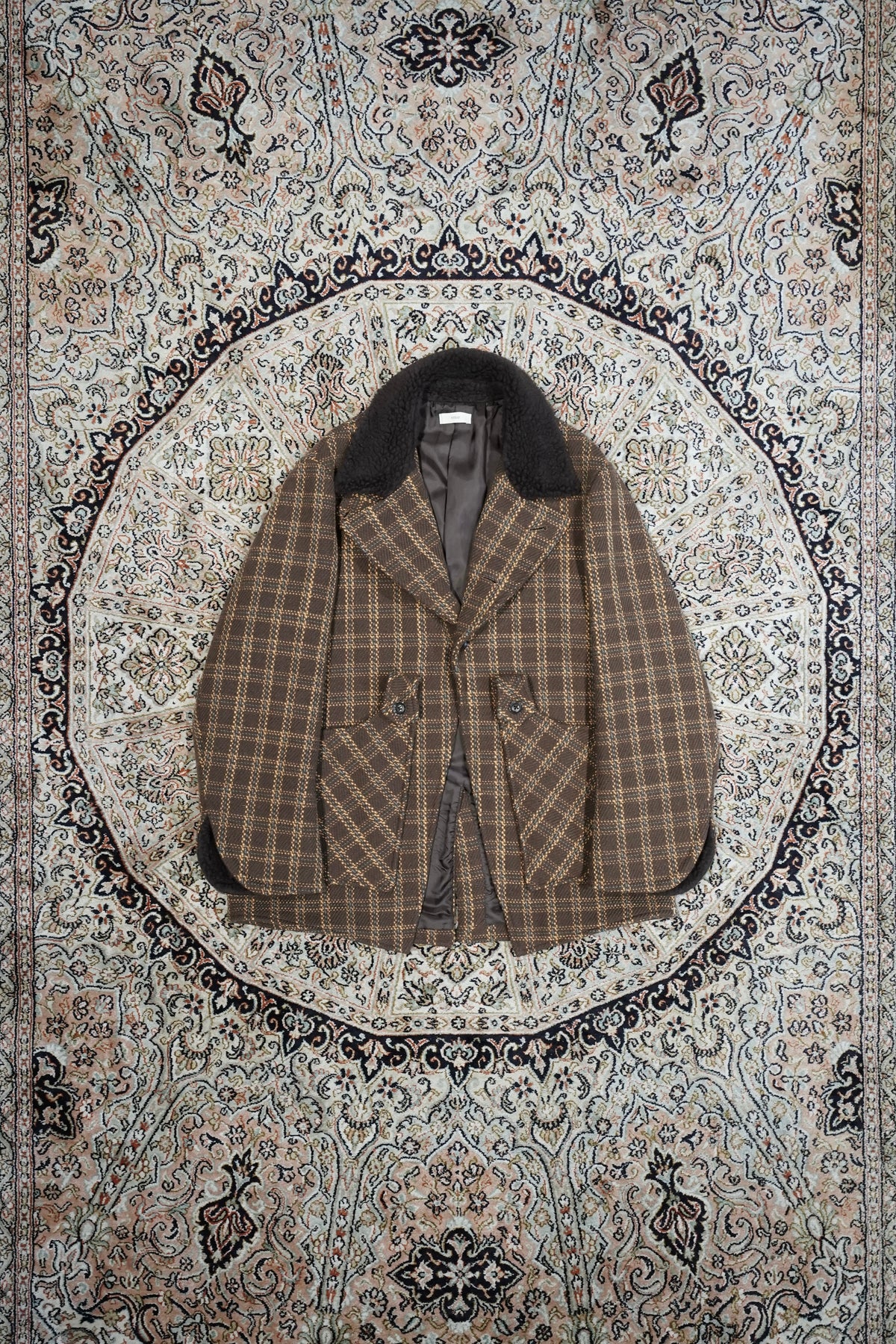 Based on the Nazca civilization spring technique linked to this season's theme.An original tweed fabric woven with the image of a diagonal twill weave.The Used and tailored coat. While creating volume by twisting 4 strands of 1/10Craftsmen carefully weave it so that the surface looks beautiful. On the collar and cuffsMade of 100% wool boa. Lapel can be worn closed or open It's a pattern. The collar can be raised and fastened with a chinstrap.It can be worn in a variety of ways. This coat symbolizes this season.