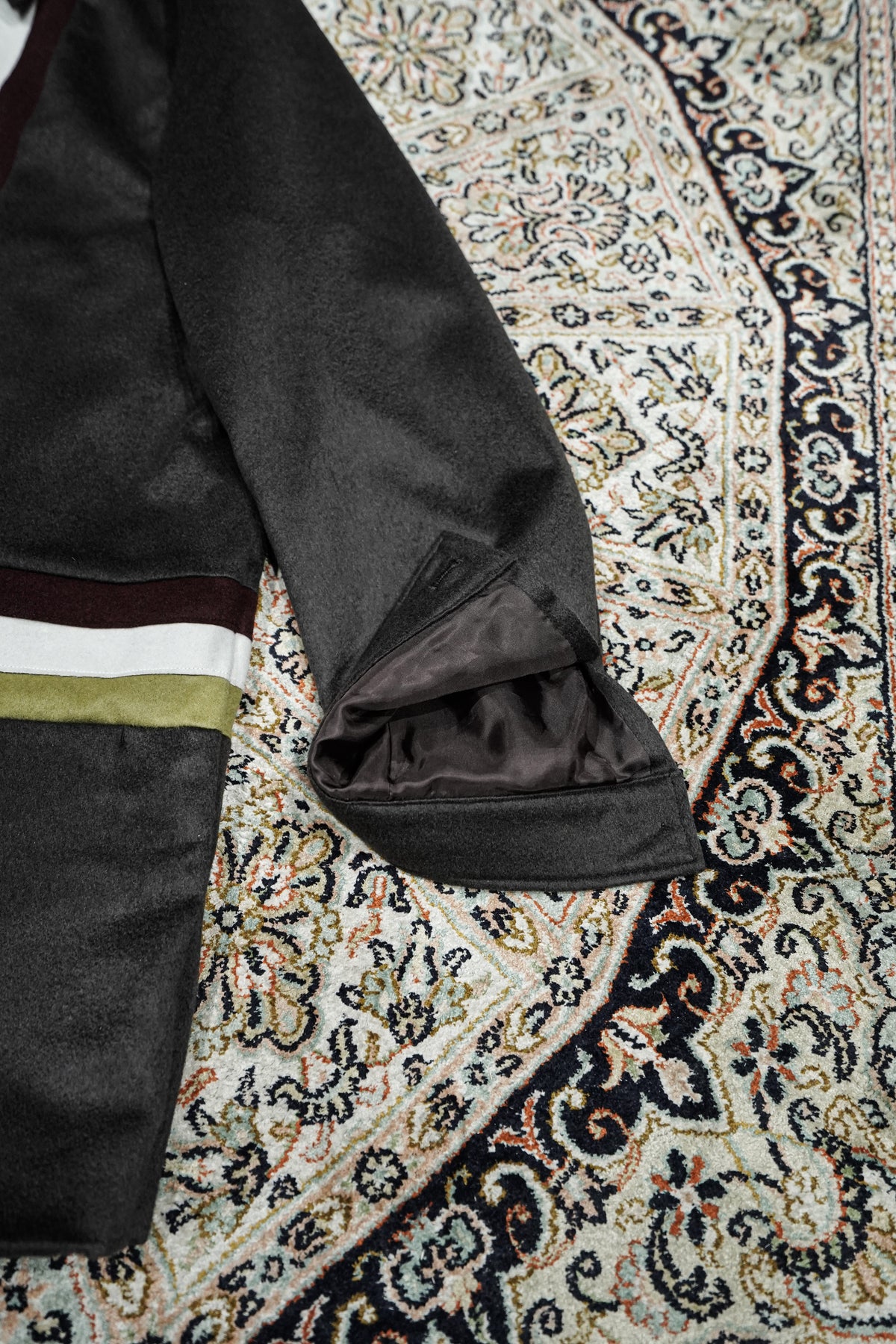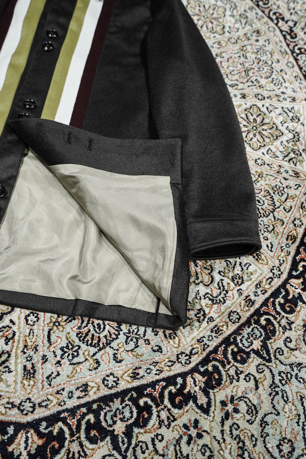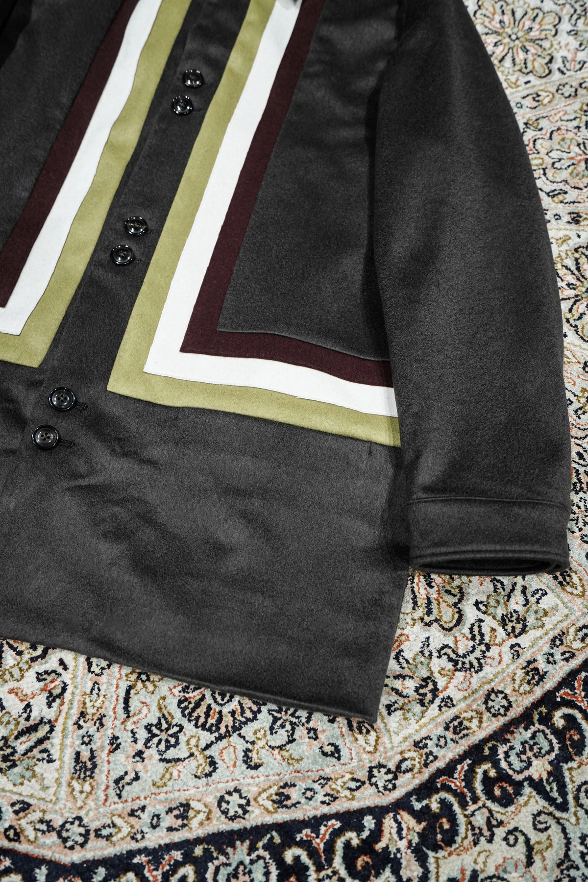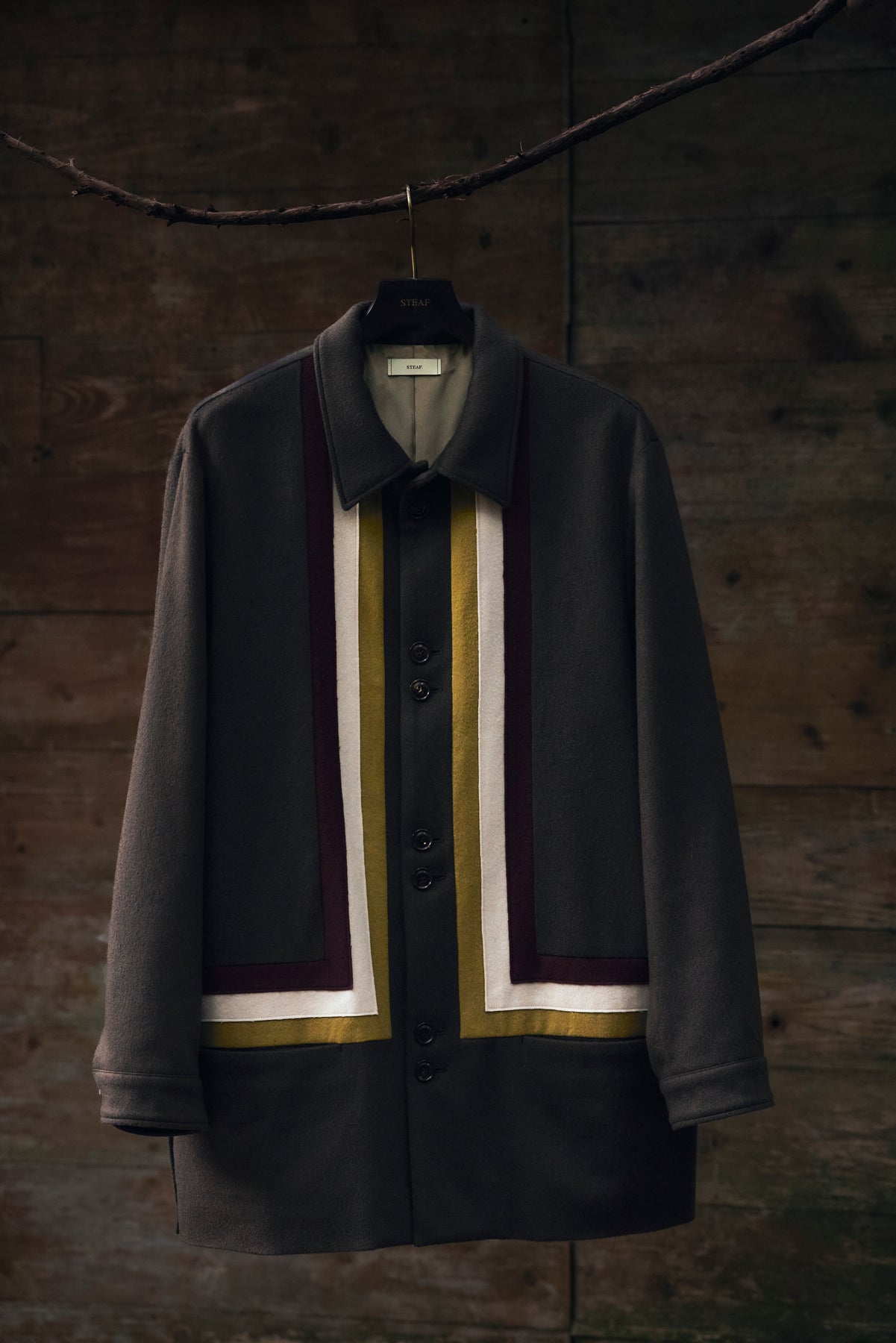 Appeared in STEAF's 1st collection and sold out as soon as it was released.A special item that has been rebuilt from GRADATION COAT.The base fabric is made by a manufacturer located in the Burrato region of Italy."MTR" PURE CASHMERE 100% extremely rare material is used with beaver finish, and the color scheme is STEAF's 25AWWe selected wool with a color scheme inspired by the theme of ``Himno Andino.''The lining of the body is luxuriously made with 100% SILK lining, and the lining of the sleeves is made of the strongest Bemberg to prevent snagging on the sleeves.And the pattern is GRADATION, which is 4 years after its release. Searching for the silhouette that you want to wear now based on COATLike STEAF, it has been redrawn three-dimensionally in pursuit of high-quality comfort.