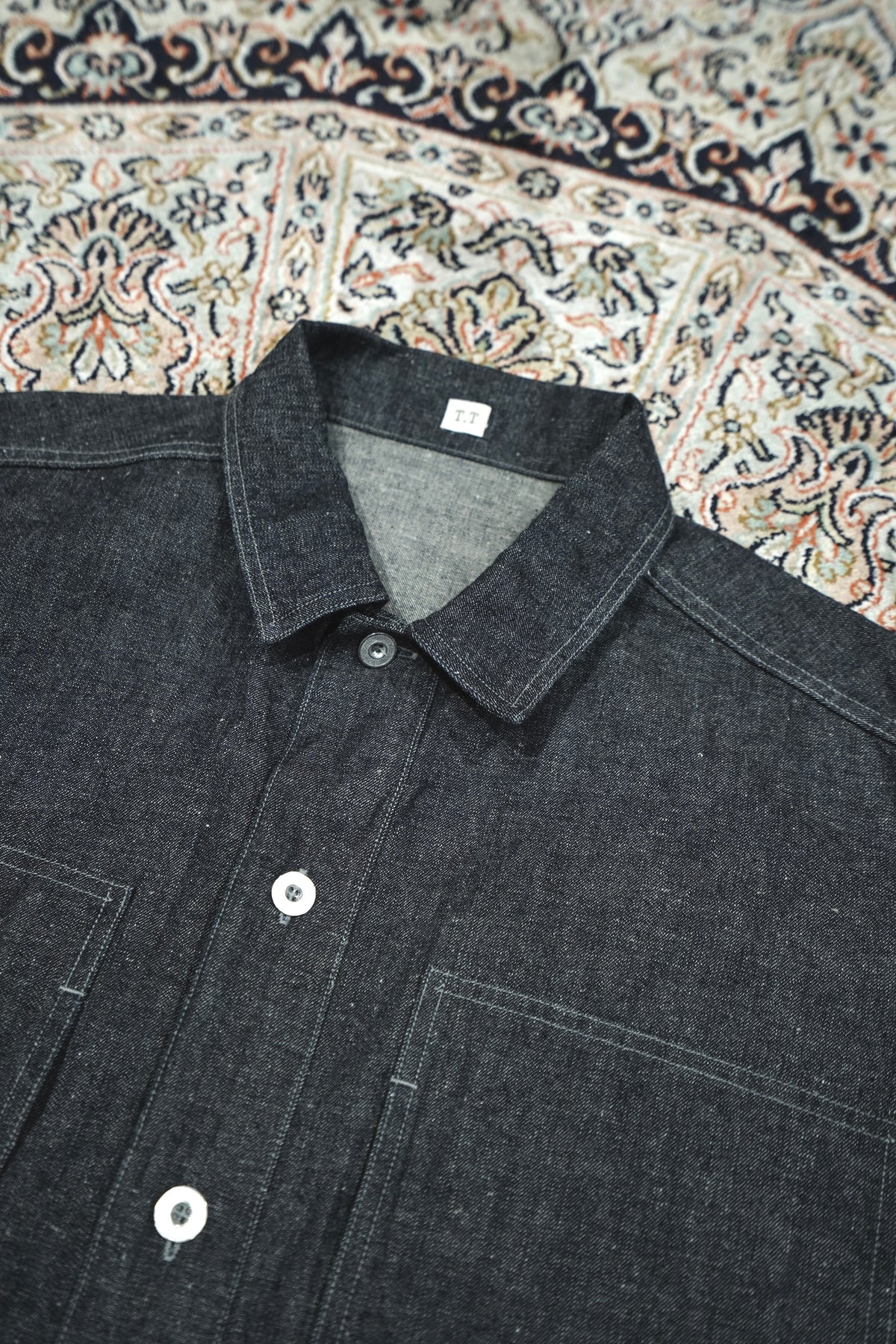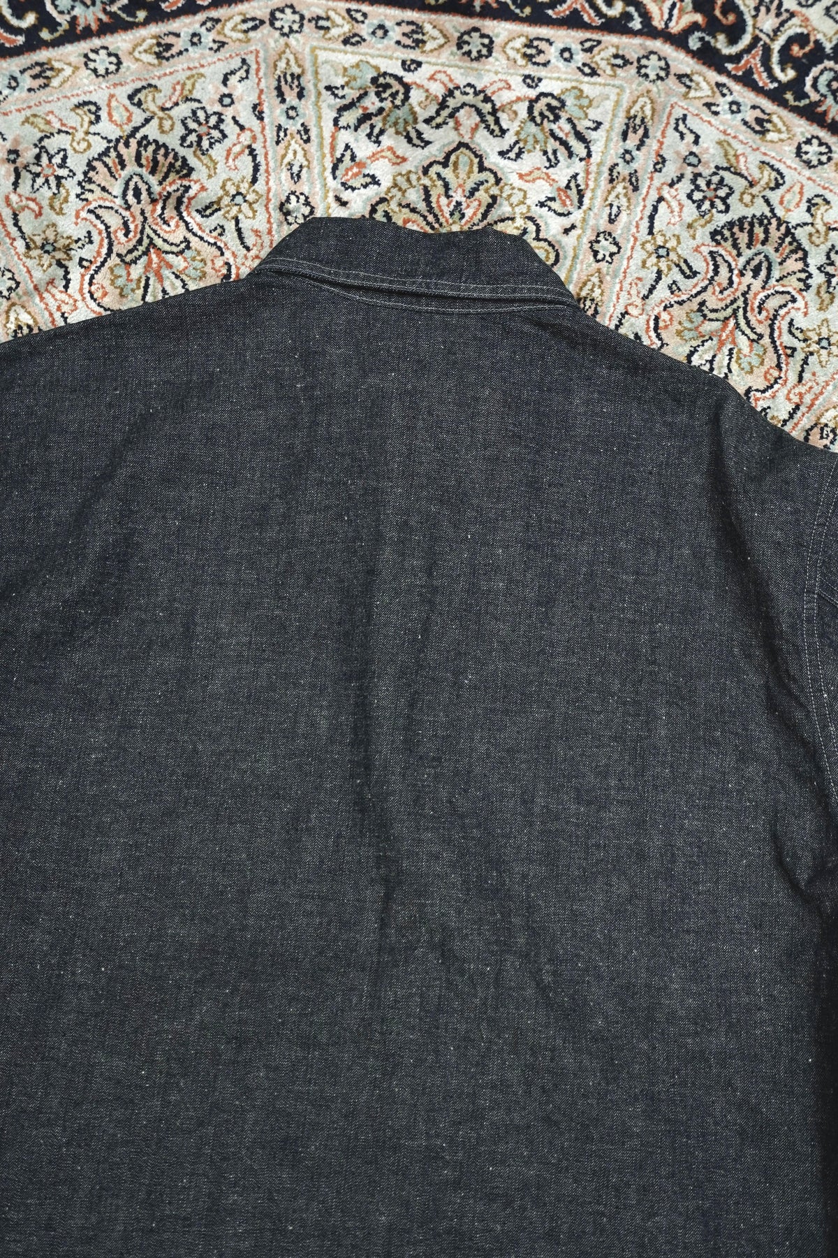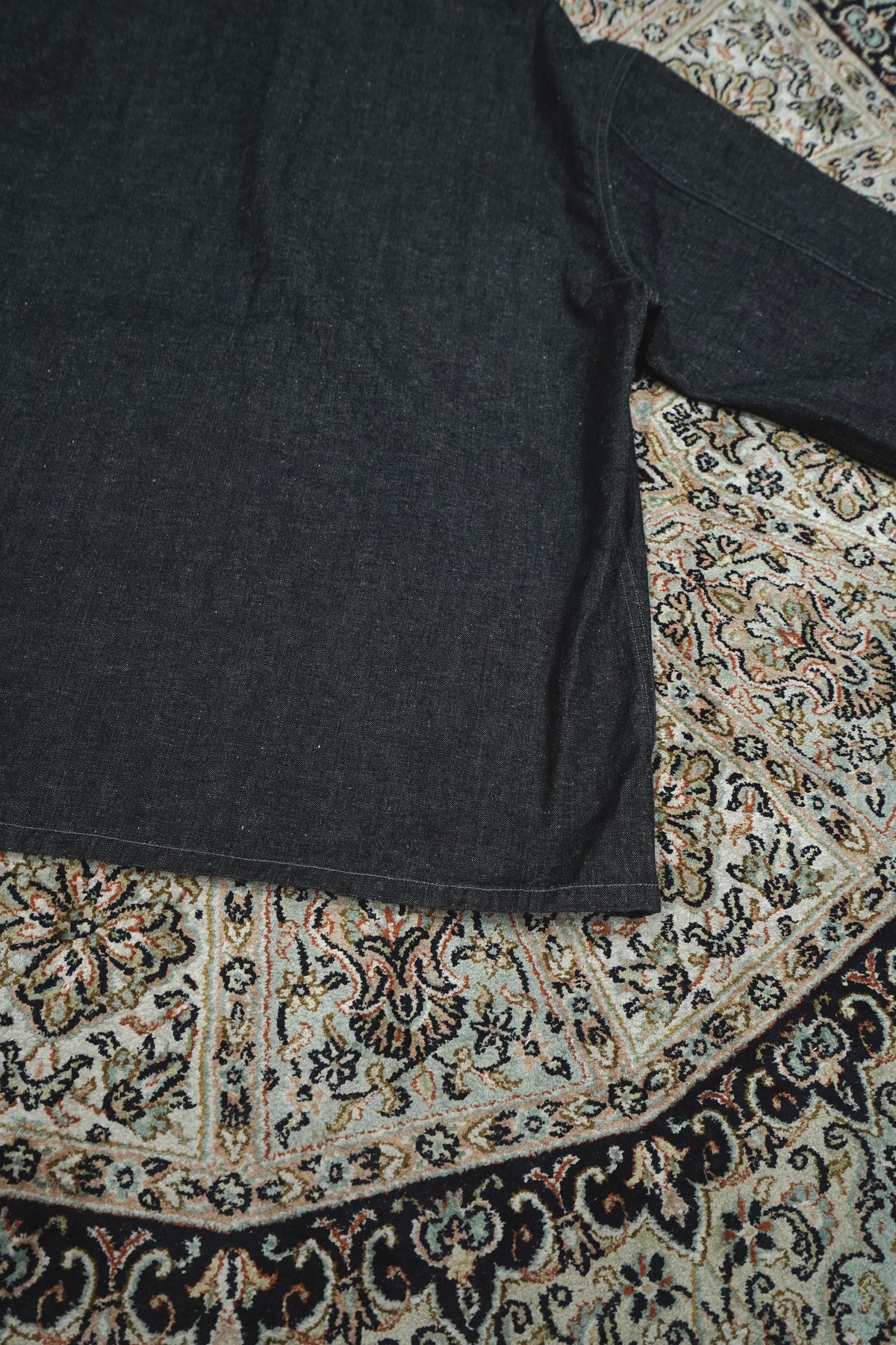 The CCC (Civilian Conservation Corps) denim pullover is a denim pullover that was adopted by the U.S. Army in 1908.It originates from a round denim jumper. In 1908, brown canvas and indigo blue design.There is a theory that Nimu was produced in parallel, but this design was registered as "SPEC6-125" in 1919.There is a record of what happened.Many young people are dissatisfied with pullovers because of the hassle of putting them on and taking them off, and some tear the front part or tear the pullover themselves.Some people customized it and wore it like an open front. A very interesting movie that reflects the feelings of the time.It's a deep piece.As for the fabric, we used an original denim fabric that was newly developed by analyzing the denim fabrics of the time.This fabric uses green cast indigo-dyed warp yarns and ecru-tinted weft yarns devised by Takahashi.By adjusting the count and increasing the number of strokes while maintaining the color, the texture of 1/2 right twill creates a constant texture.It has a rich expression that is different from the left twill denim.