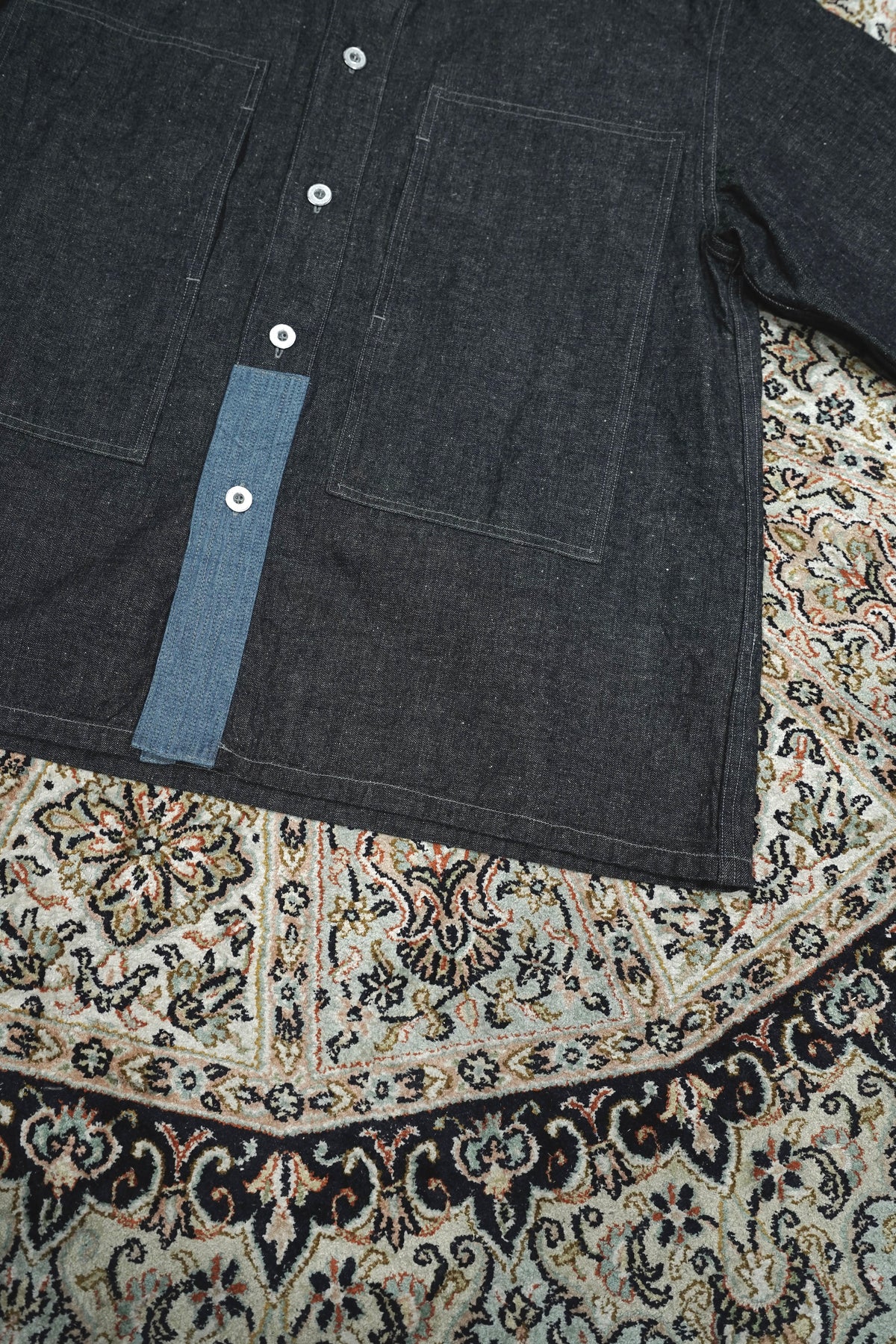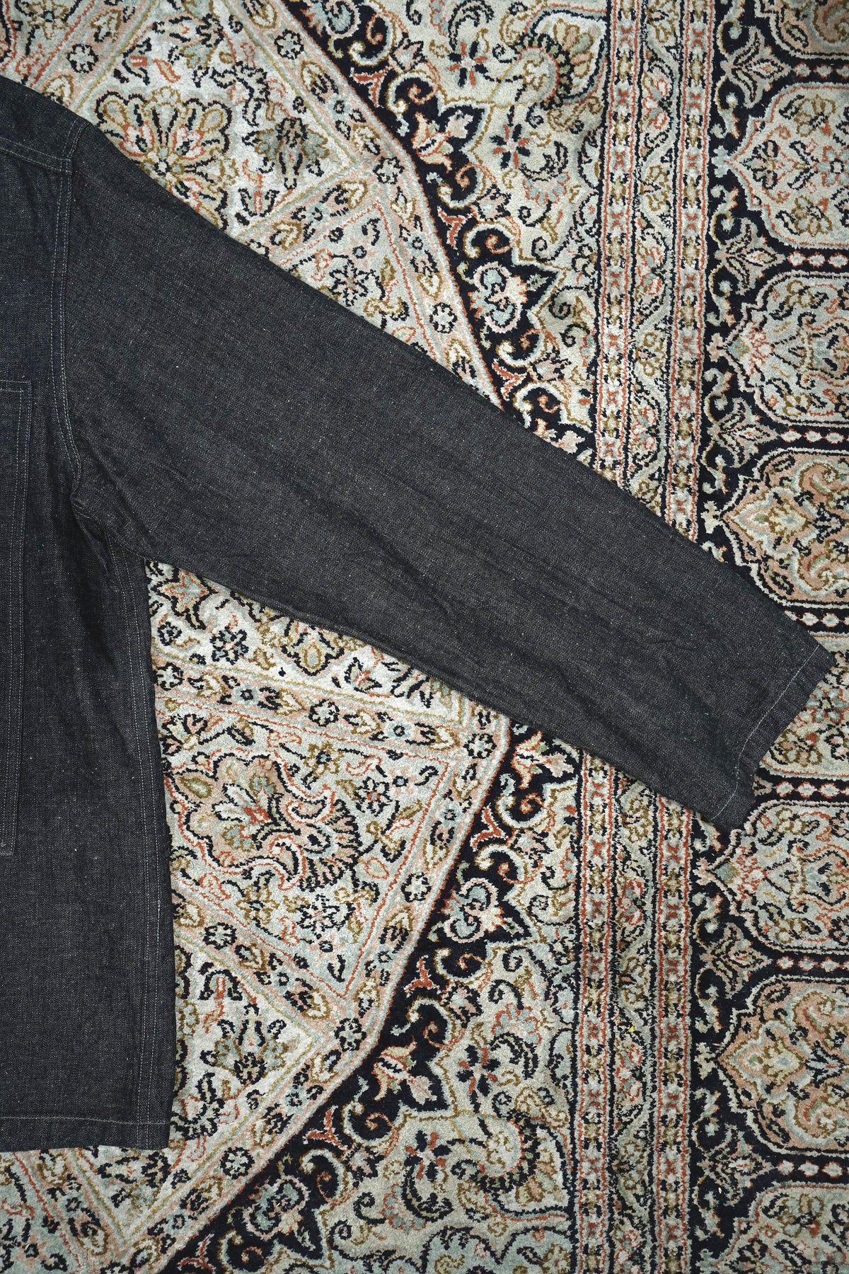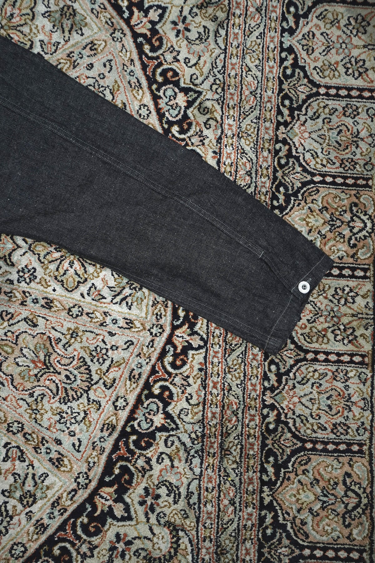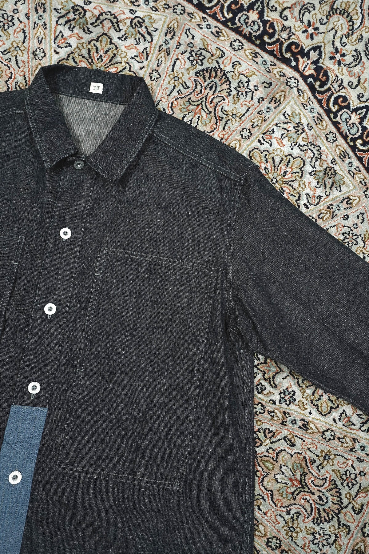 The CCC (Civilian Conservation Corps) denim pullover is a denim pullover that was adopted by the U.S. Army in 1908.It originates from a round denim jumper. In 1908, brown canvas and indigo blue design.There is a theory that Nimu was produced in parallel, but this design was registered as "SPEC6-125" in 1919.There is a record of what happened.Many young people are dissatisfied with pullovers because of the hassle of putting them on and taking them off, and some tear the front part or tear the pullover themselves.Some people customized it and wore it like an open front. A very interesting movie that reflects the feelings of the time.It's a deep piece.As for the fabric, we used an original denim fabric that was newly developed by analyzing the denim fabrics of the time.This fabric uses green cast indigo-dyed warp yarns and ecru-tinted weft yarns devised by Takahashi.By adjusting the count and increasing the number of strokes while maintaining the color, the texture of 1/2 right twill creates a constant texture.It has a rich expression that is different from the left twill denim.