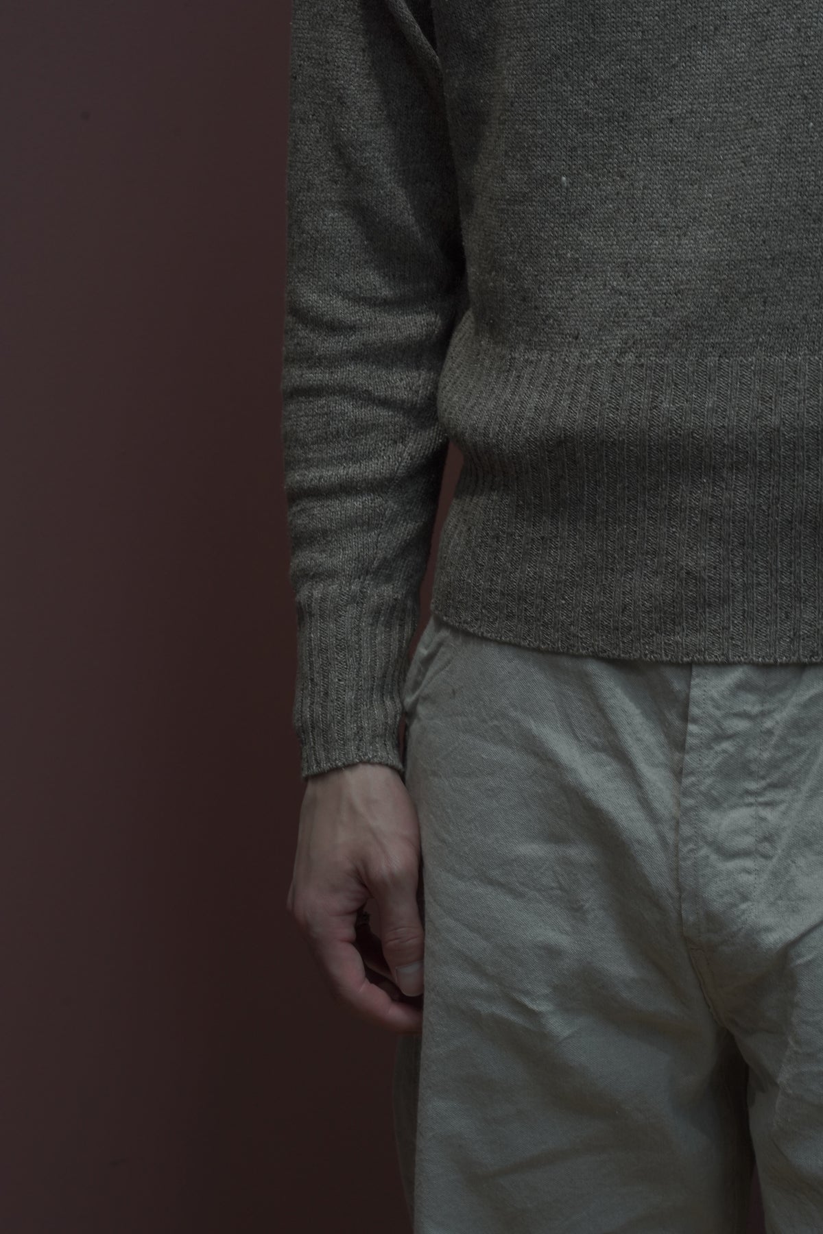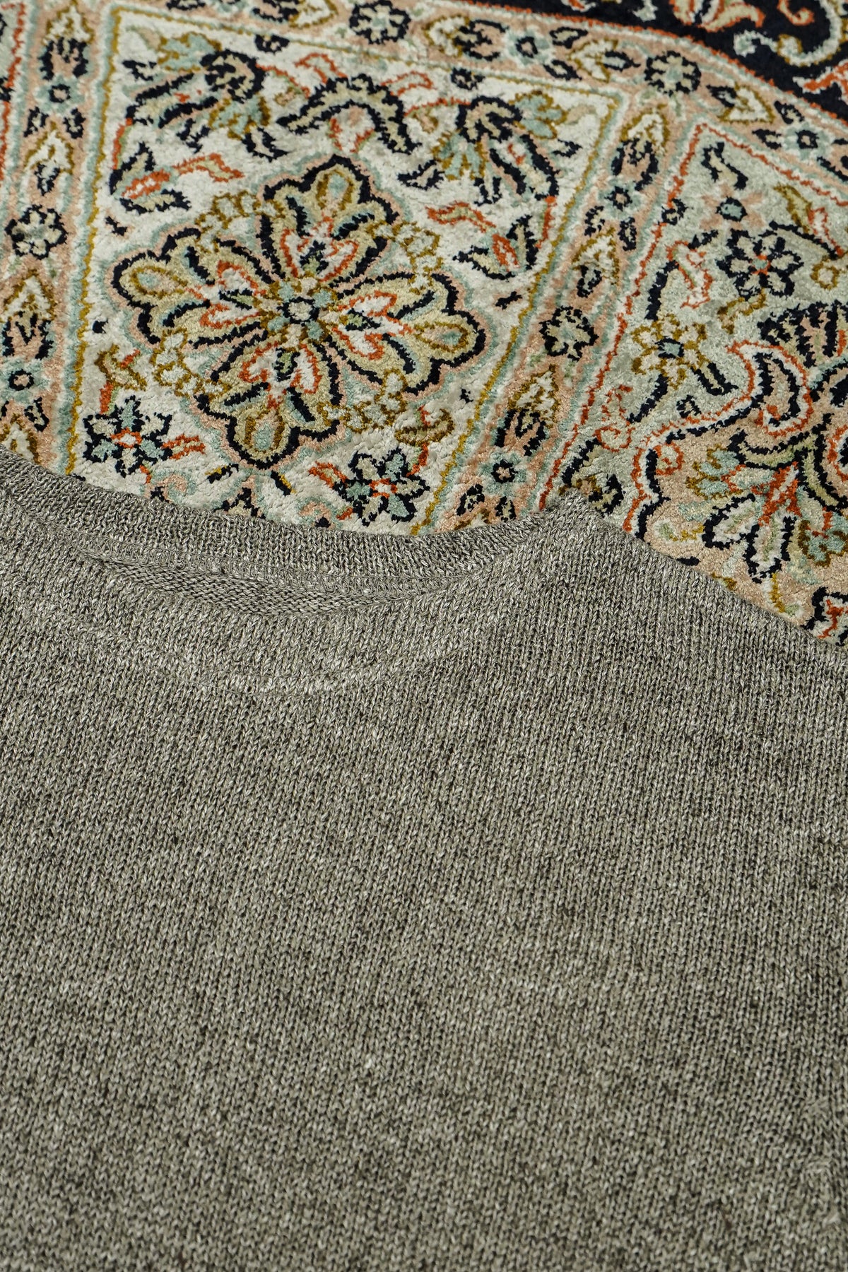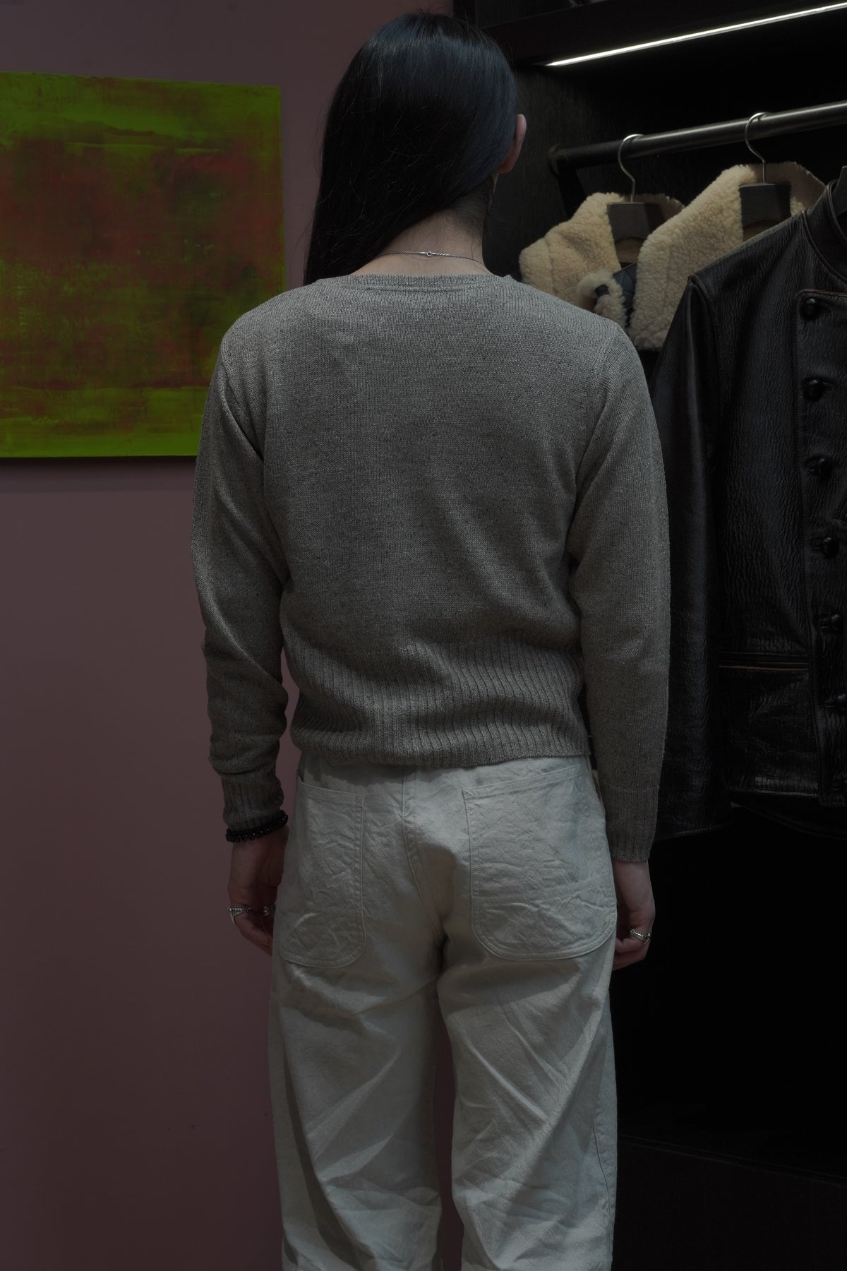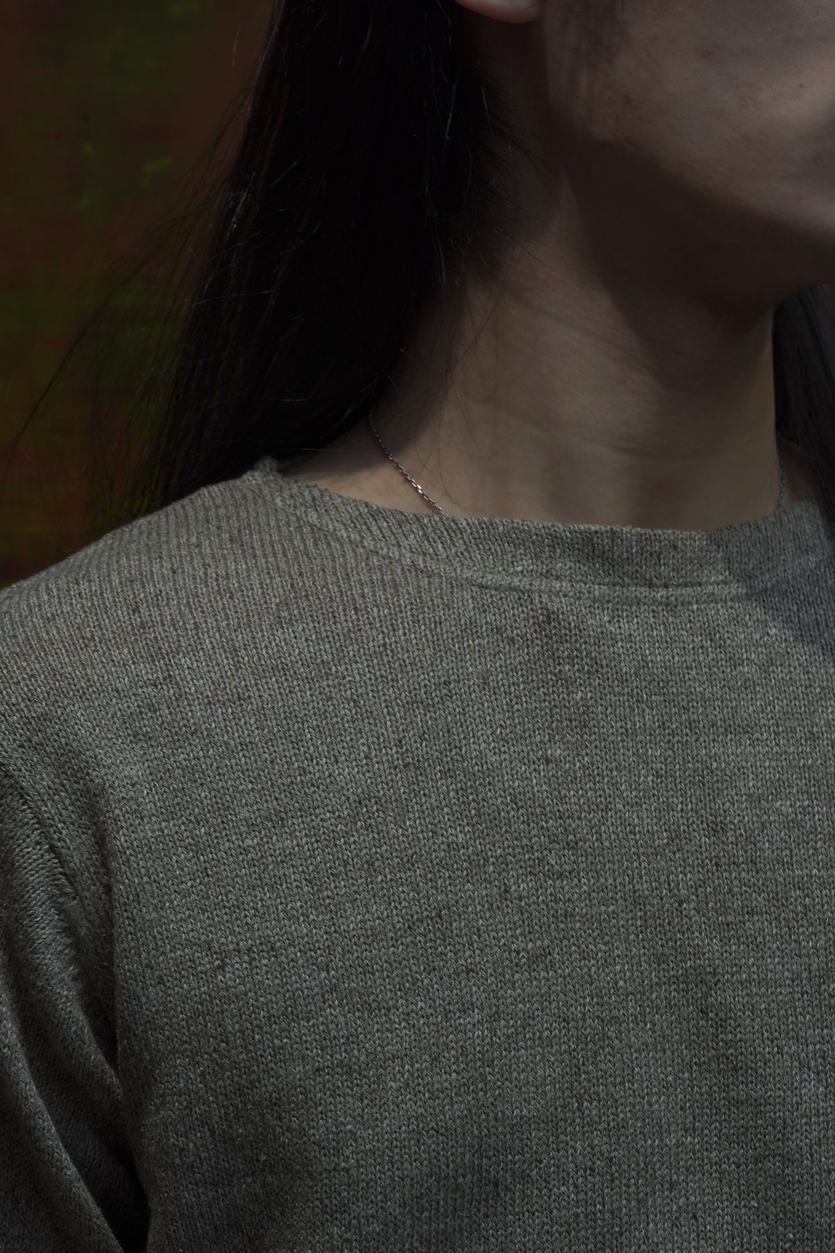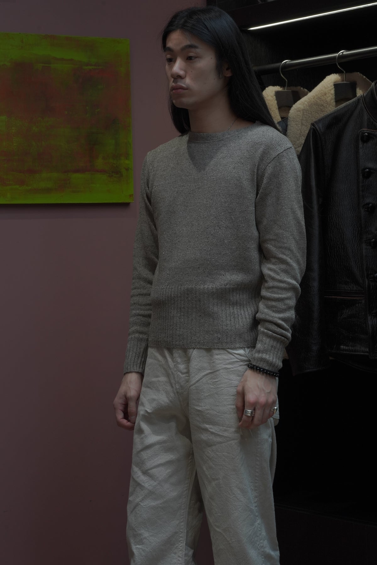 Une pièce conçue sur la base du pull American Varsity Letterman des années 1950. début américainEn tant que vêtements de sport, les pulls portaient à l'époque le nom de l'université cousu sur la poitrine. Cette lettre dans T.T.Le design s'inspire d'un pull vintage de Californie, dont les patchs ont été supprimés.Je l'ai refait.En tricotant avec un mélange de fils de soie et de lin, la stabilité du tricot est augmentée, tandis que la caractéristique de sécheresse des vêtements de seconde main est améliorée.Cela représente le toucher.