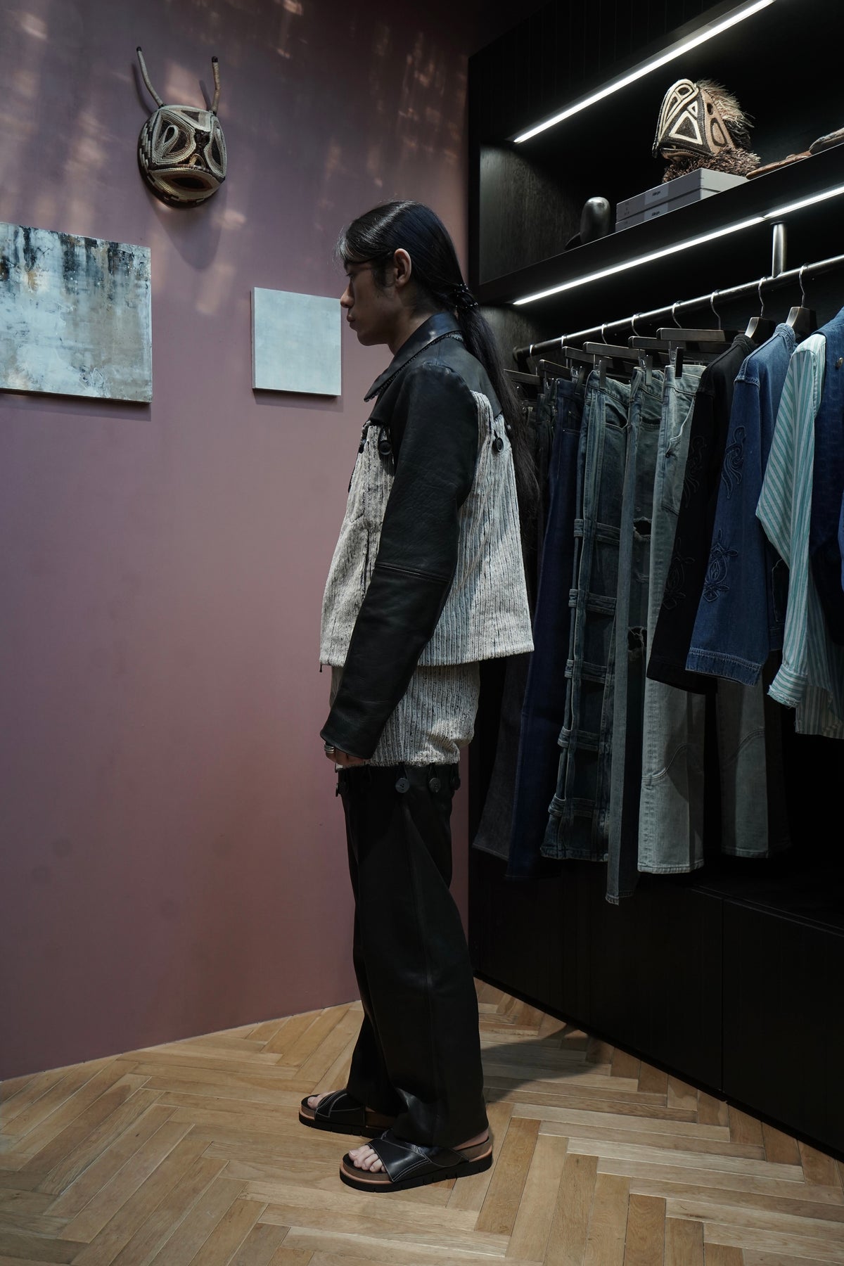 패턴에서 봉제 및 직물 가공에 이르기까지 그는 모든 것을 직접 처리하고 맞춤형 의류로, 때로는 예술 작품으로 제시합니다.