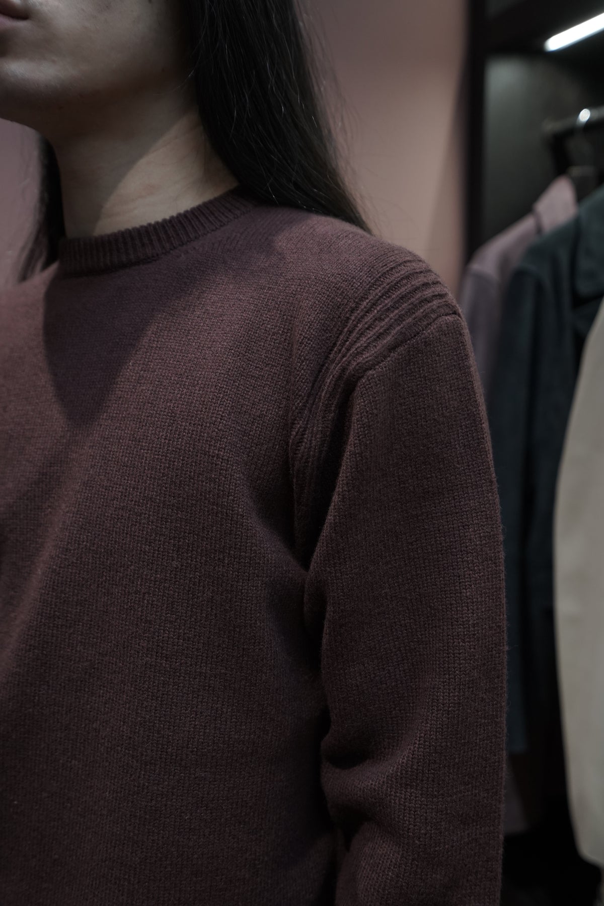 1940 년대에 스포츠웨어로 미국에서 스웨터로 만든 승무원 넥 풀오버 니트. 어깨에 늑골, 긴 허리 및 커프의 늑골이 있습니다. 귀중한 흰색 캐시미어와 여분의 고급 양모가 혼합 된 원사로 제작되었습니다. 직물은 피부에 가볍고 따뜻하며 부드럽습니다. 캐시미어의 칙칙하고 부드러움과 울의 부풀어 오르고 탄력성을 결합합니다.