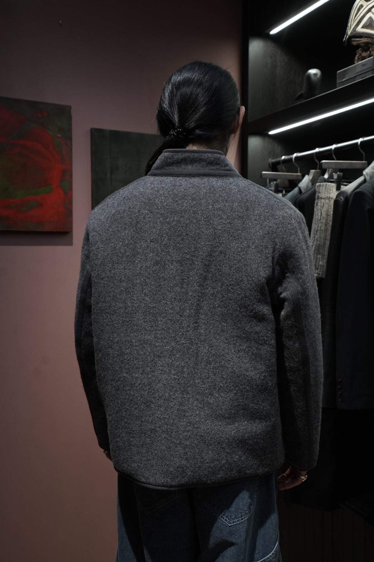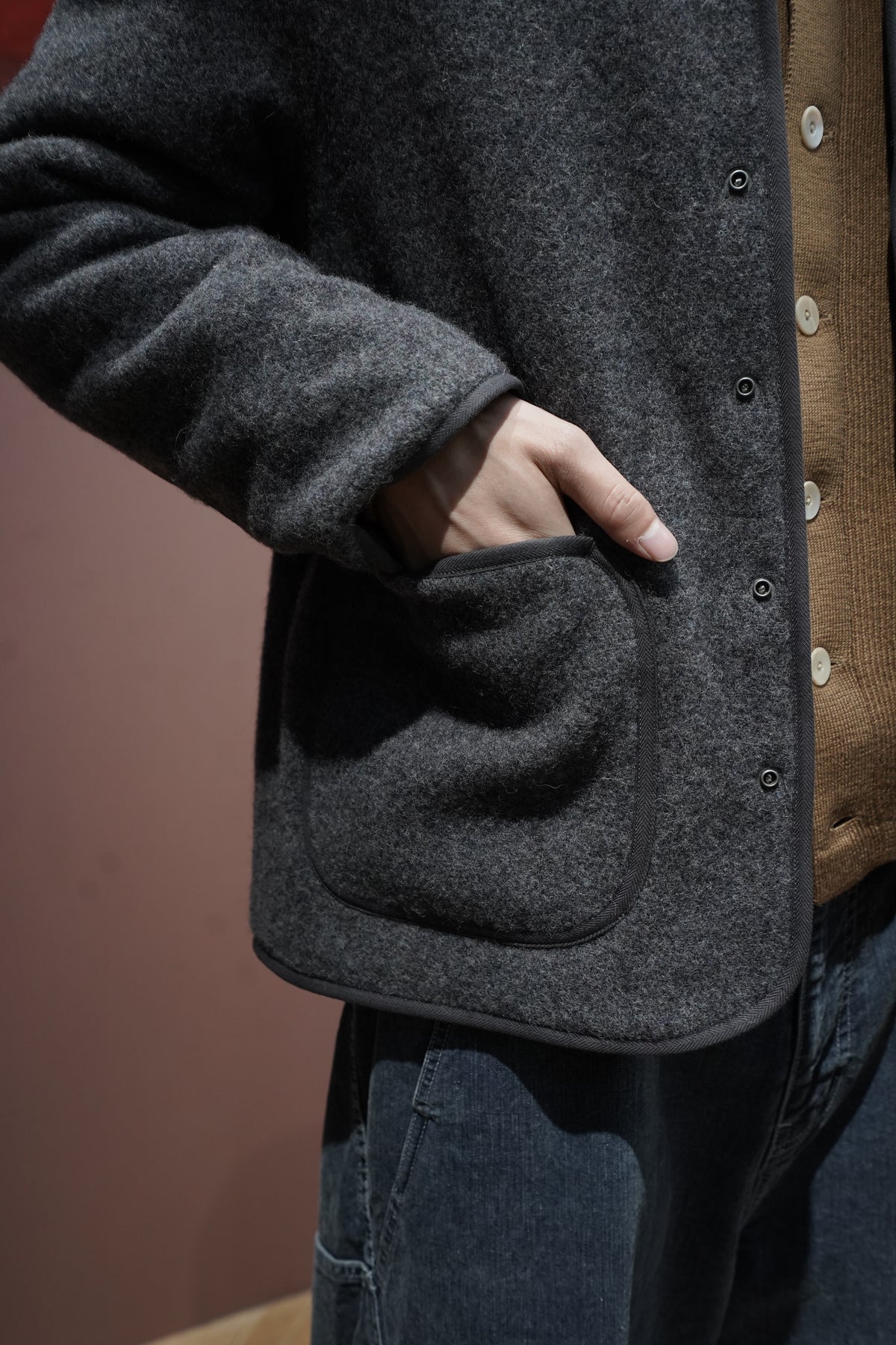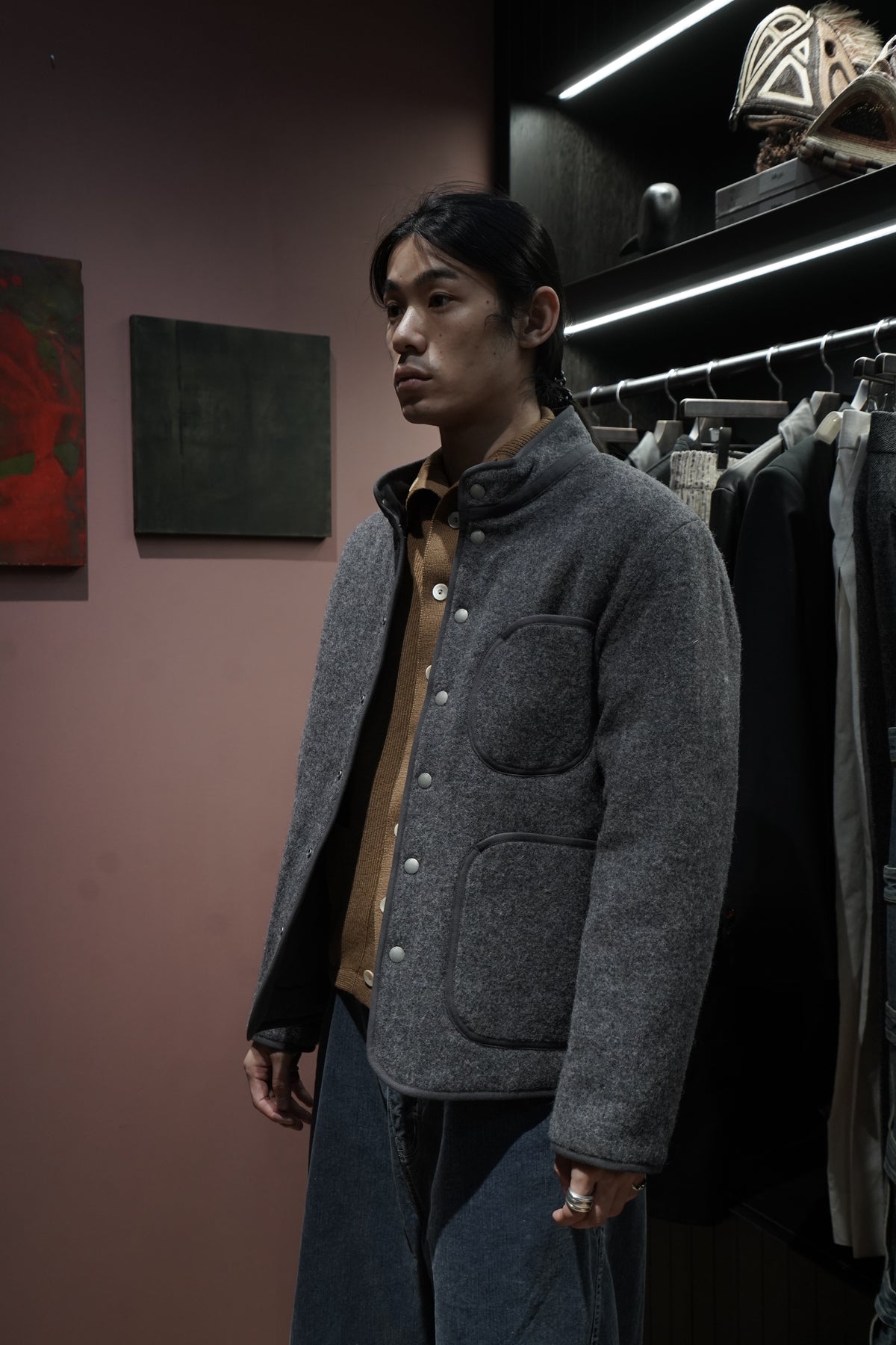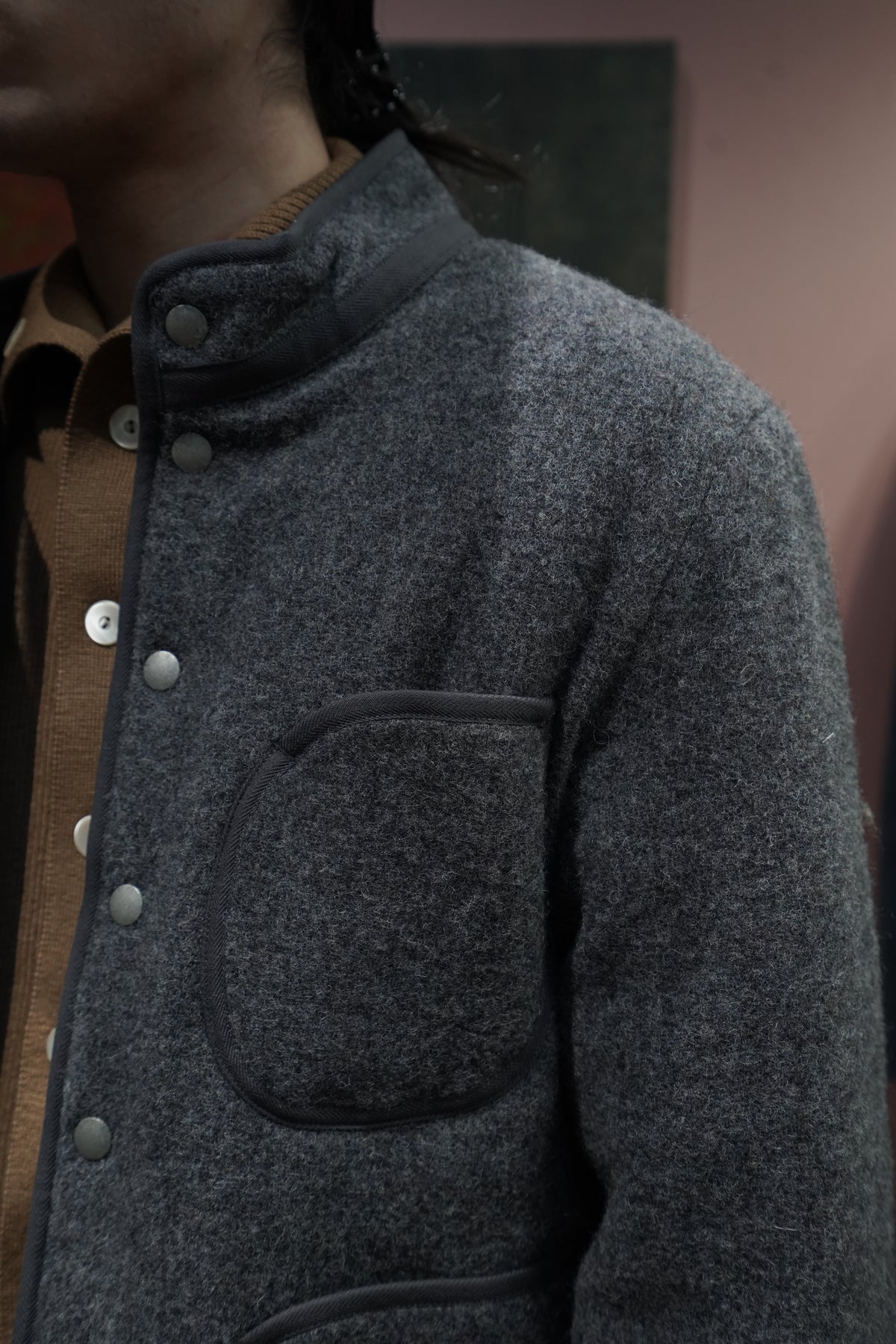 알제리 전쟁 중에 사용되는 프랑스 퀼트 라이너 재킷의 후기 모델을 기반 으로이 디자인은 미국 공포의 상징 인 Browns Beach Jacket의 세부 사항을 결합합니다. 이 재료는 미네소타에서 발견되는 빈티지 담요 직물을 재현하기 위해면 단계에서 블렌드를 조정하여 생성 된 원래 재료입니다. 미묘한 색상이 특징입니다. 브러시 된 마감 처리는 부풀어 오른 질감을 제공합니다.