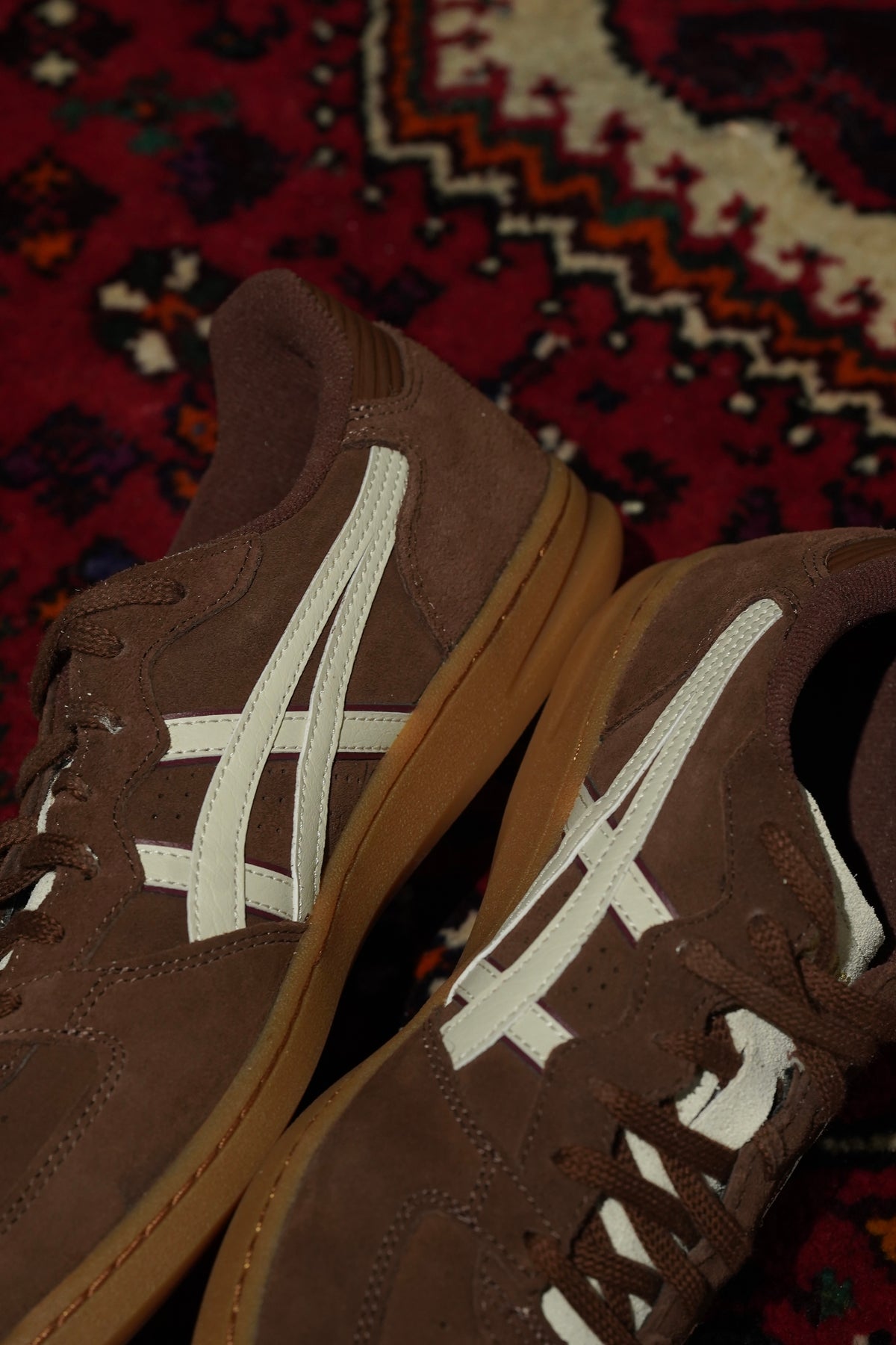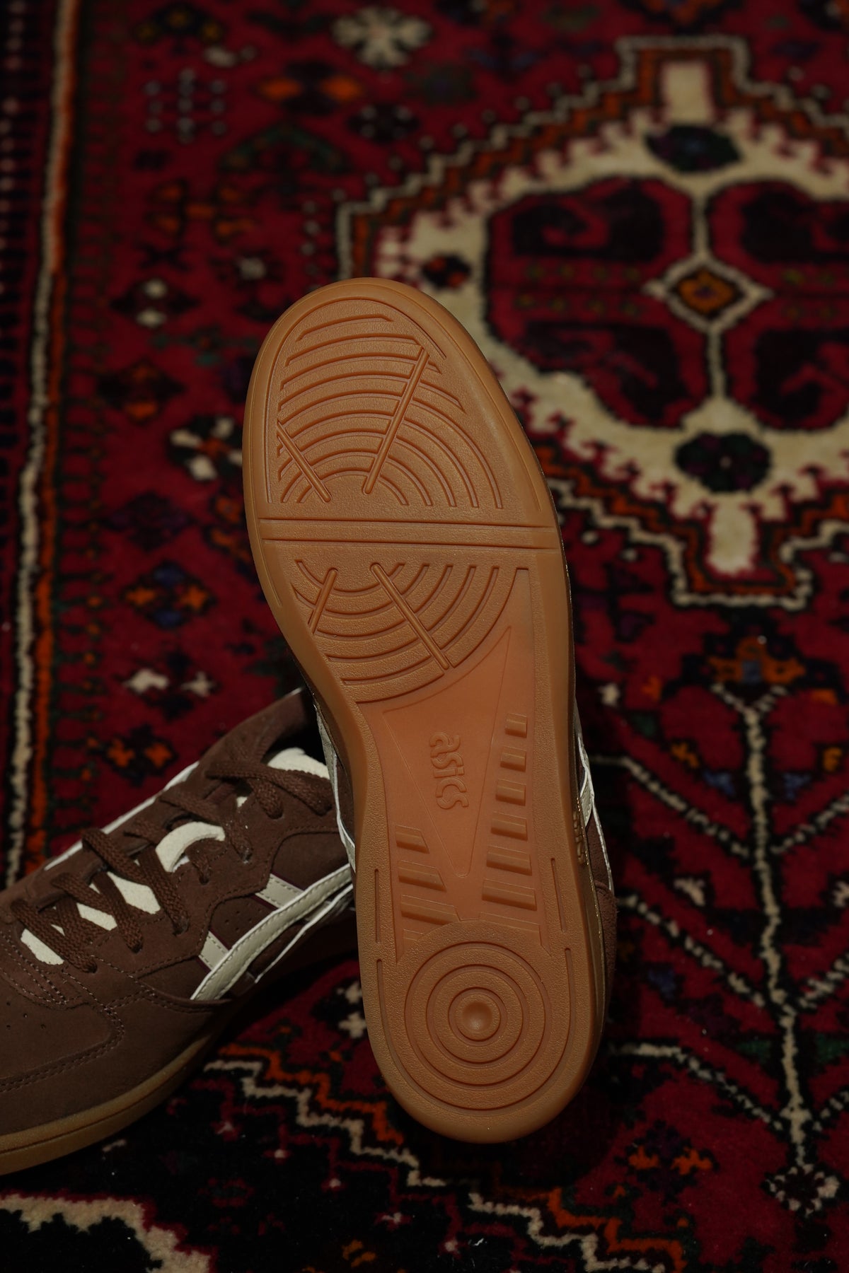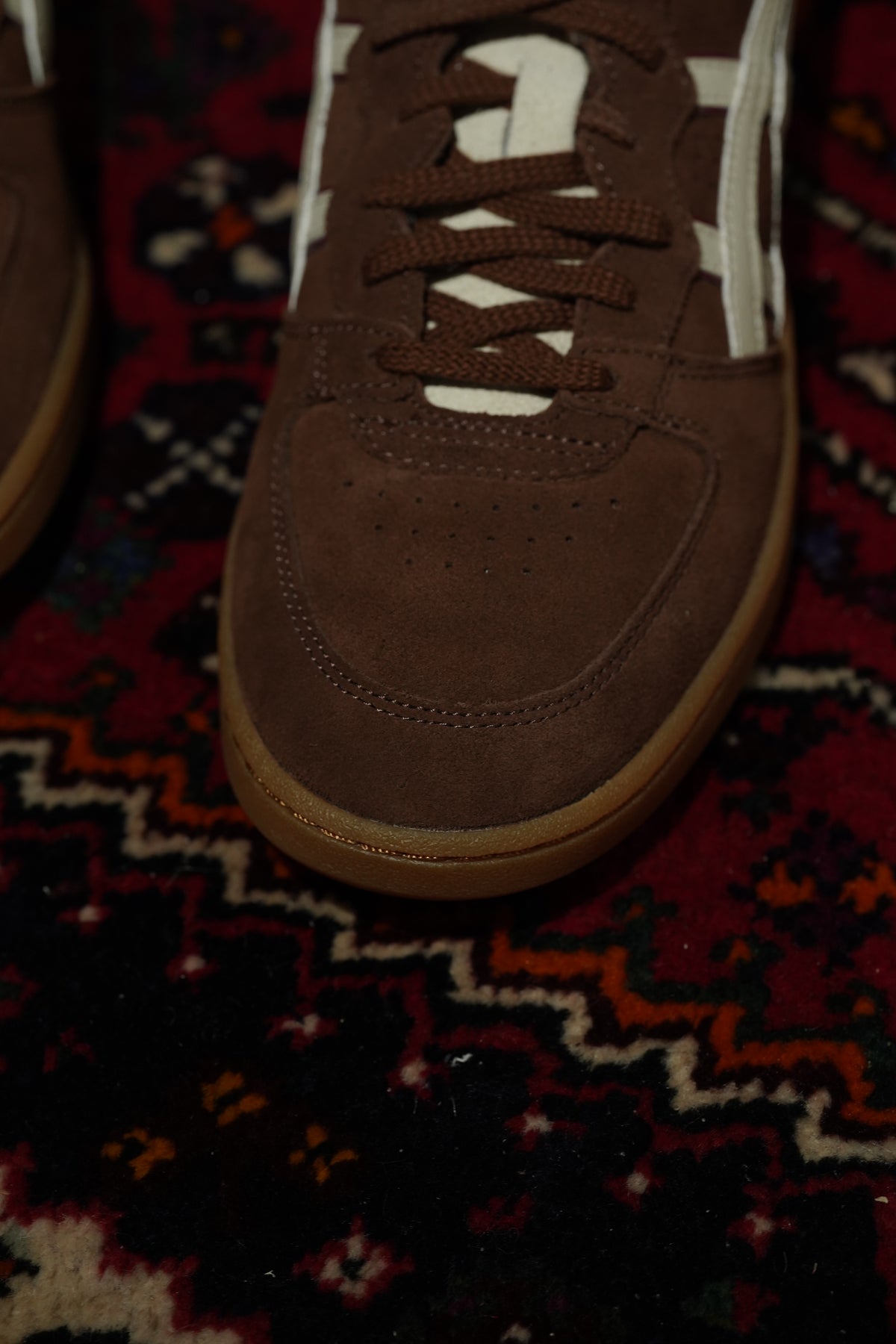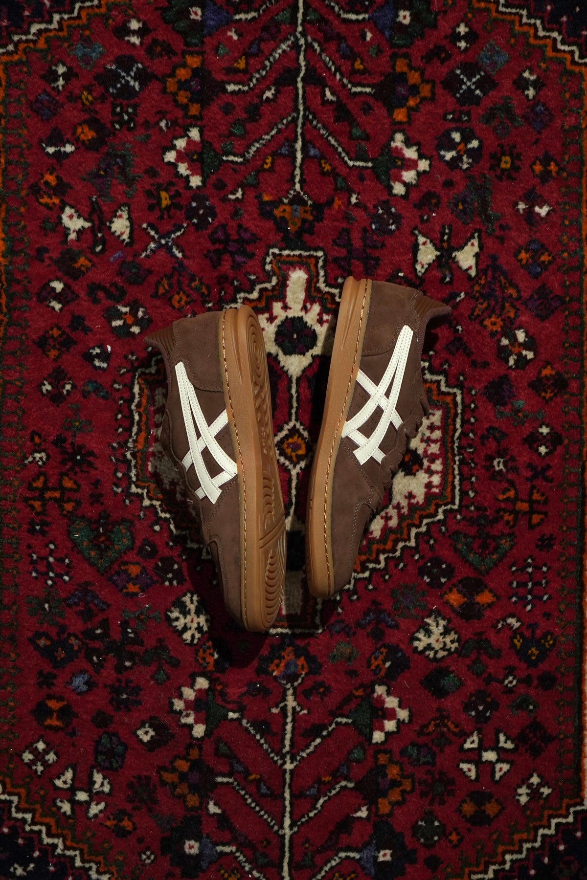 アッパーには人工皮革とスエードのパネリング、アウターソールにはガムソールを採用。