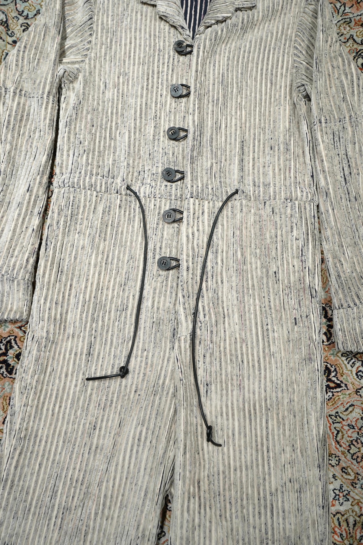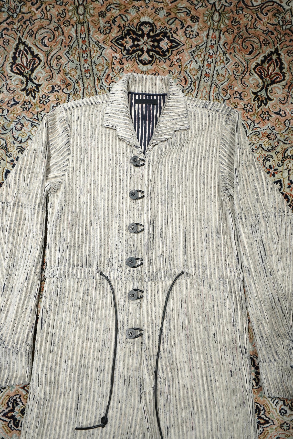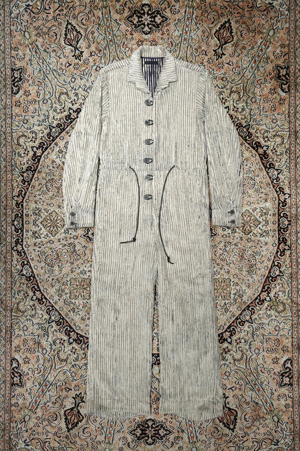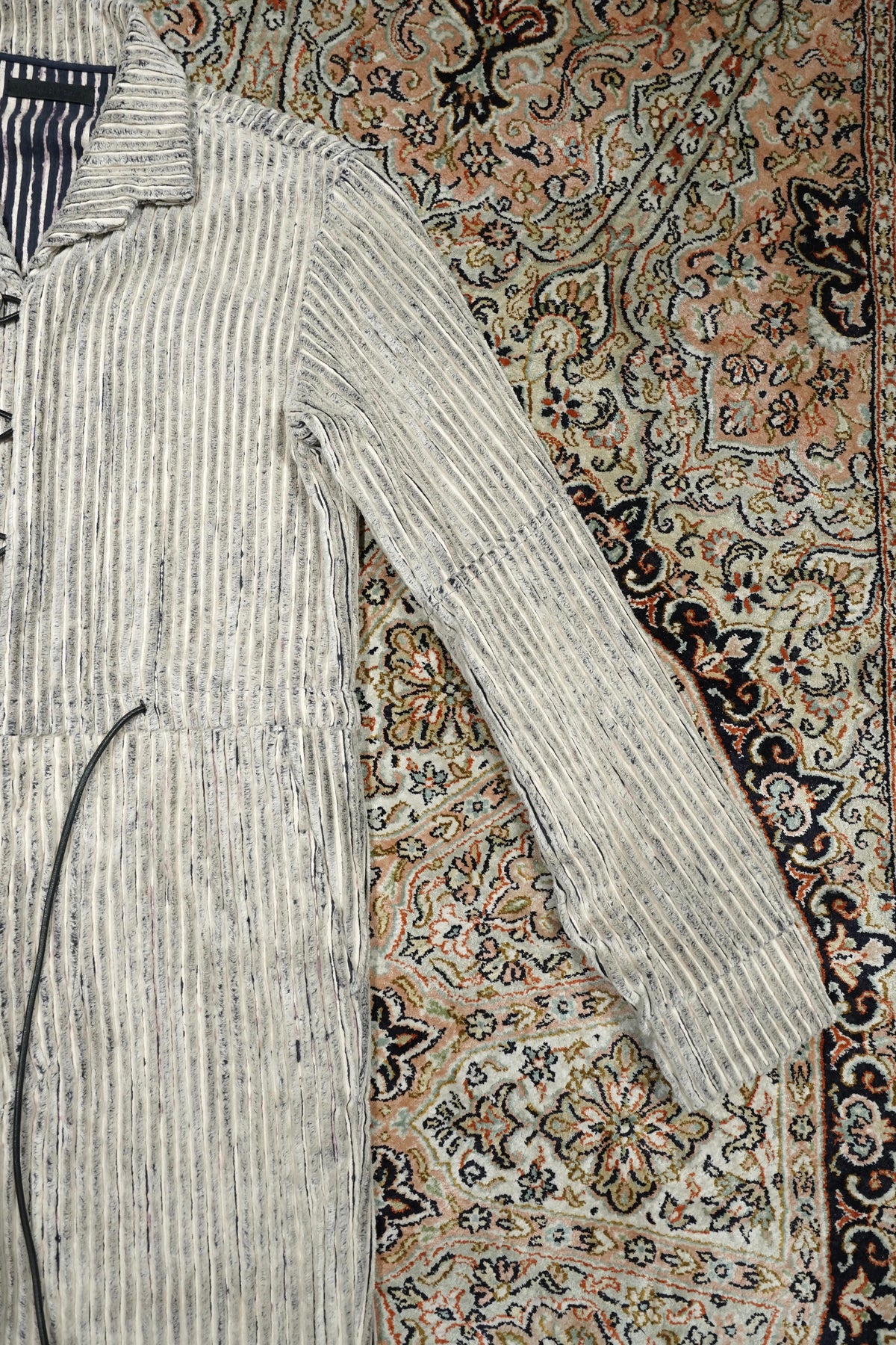 パターンから縫製、生地加工まで全て自身で手がけ、オーダーメイド服として、ときにアートワークとして発表。