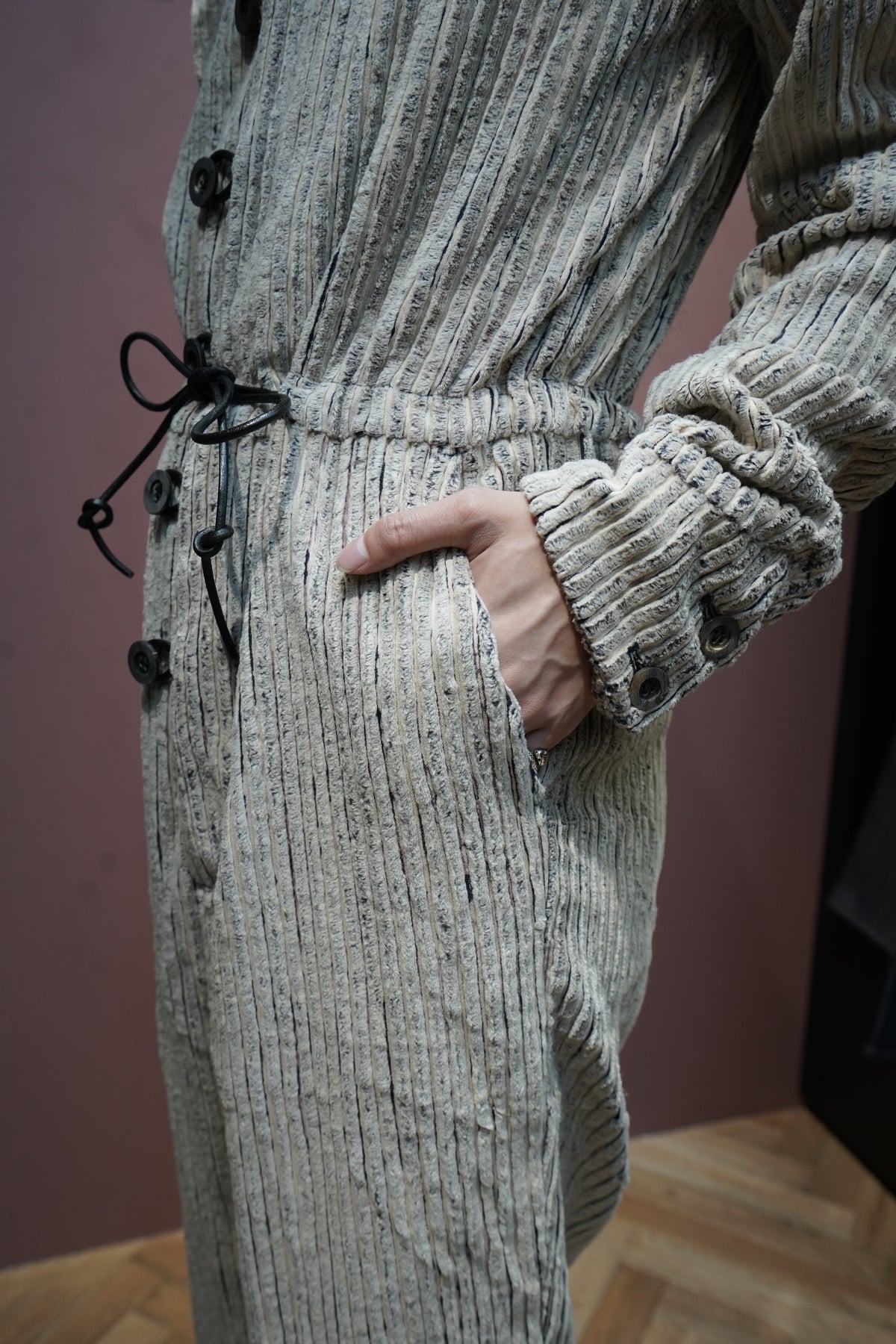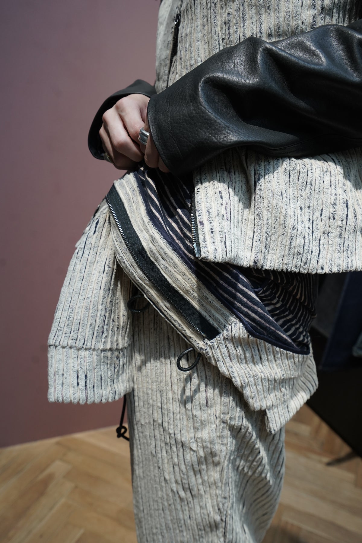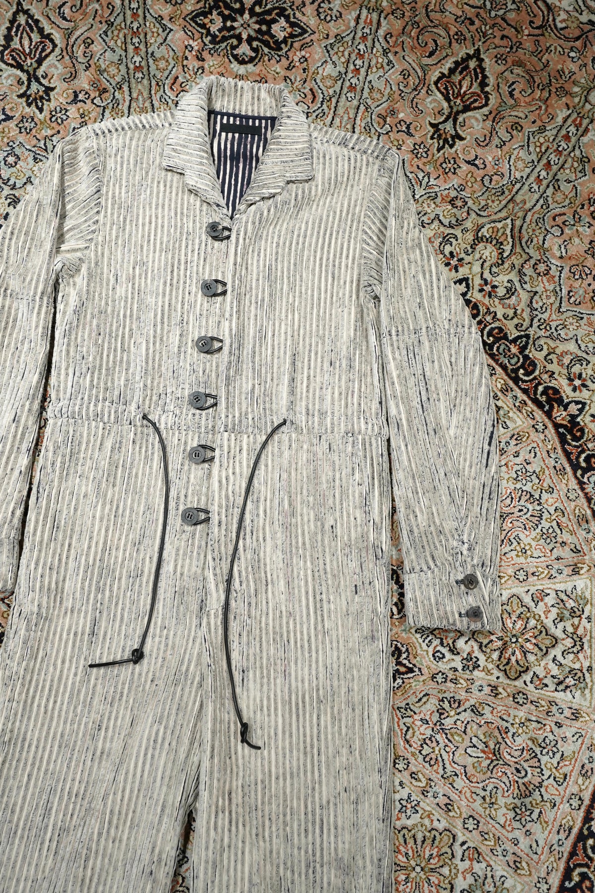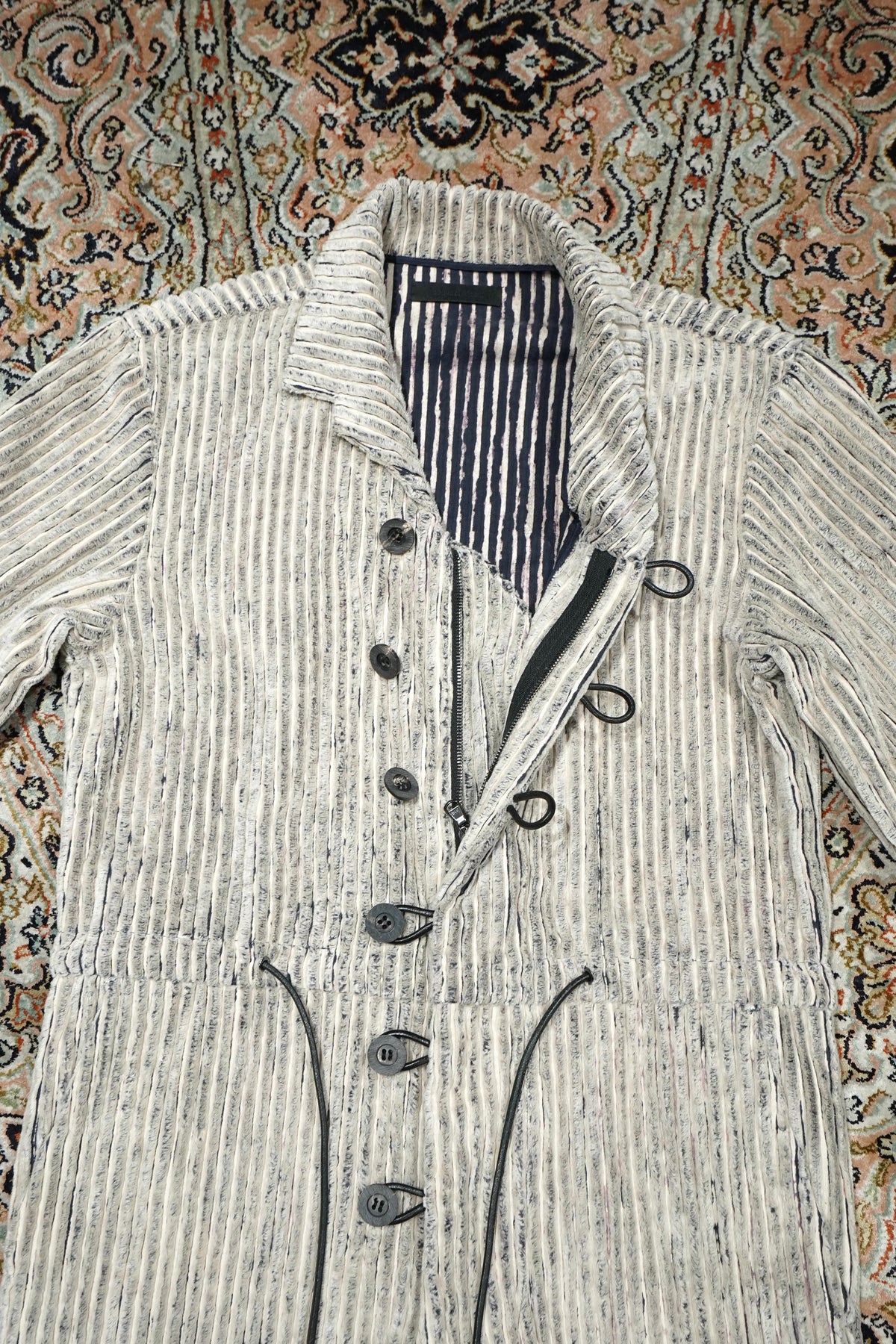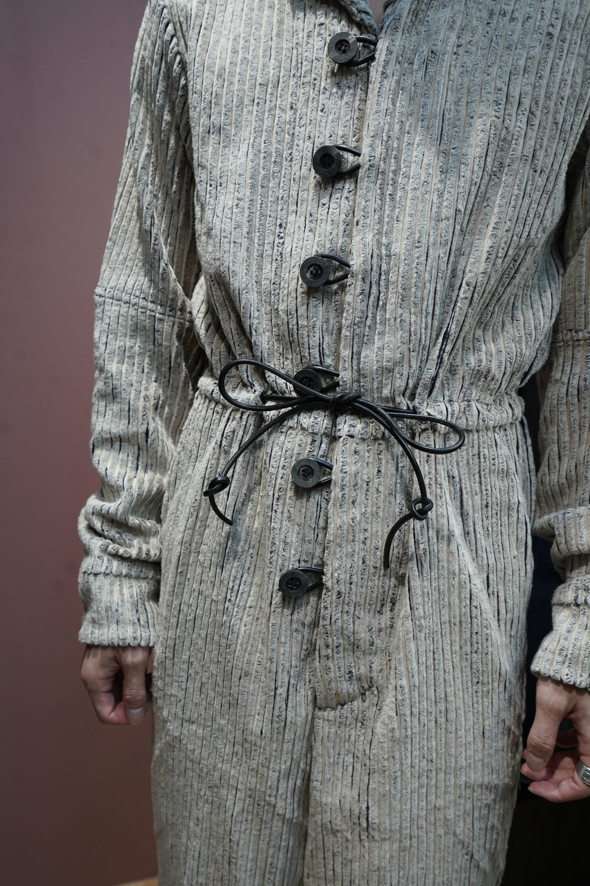 パターンから縫製、生地加工まで全て自身で手がけ、オーダーメイド服として、ときにアートワークとして発表。