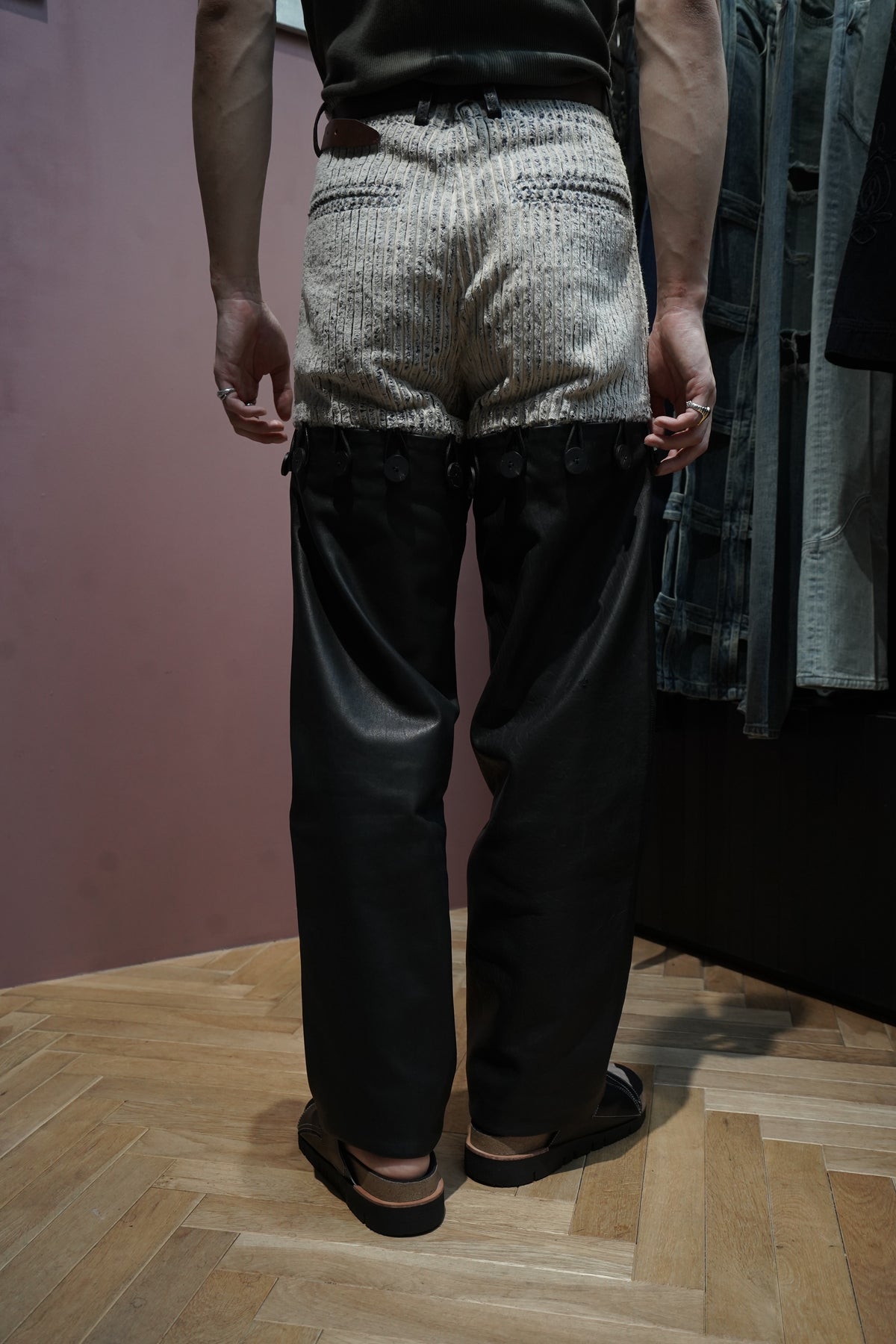 パターンから縫製、生地加工まで全て自身で手がけ、オーダーメイド服として、ときにアートワークとして発表。