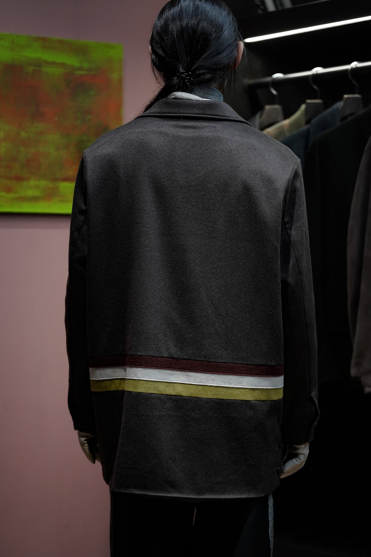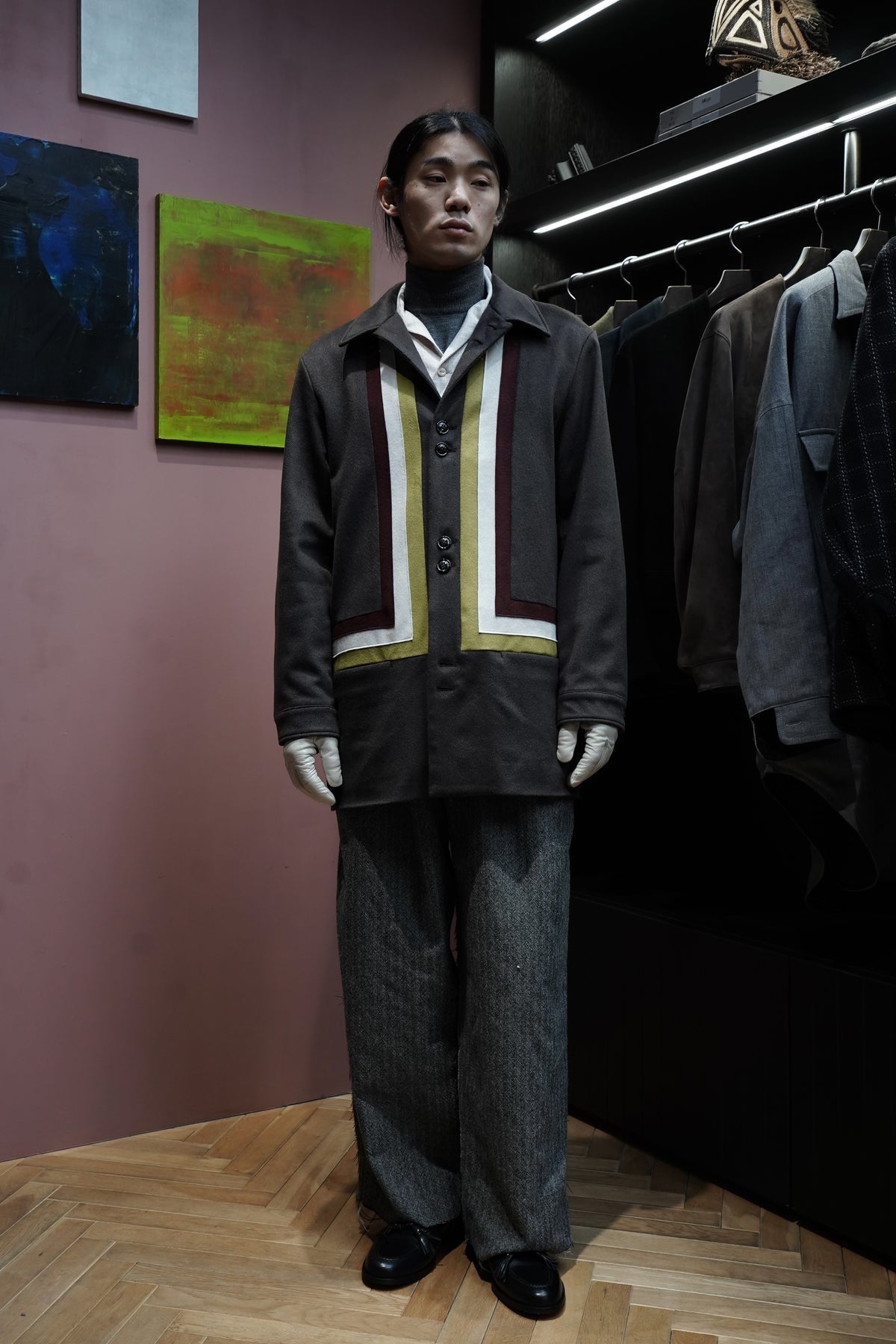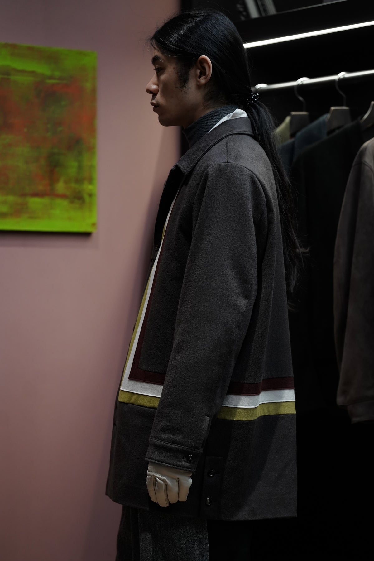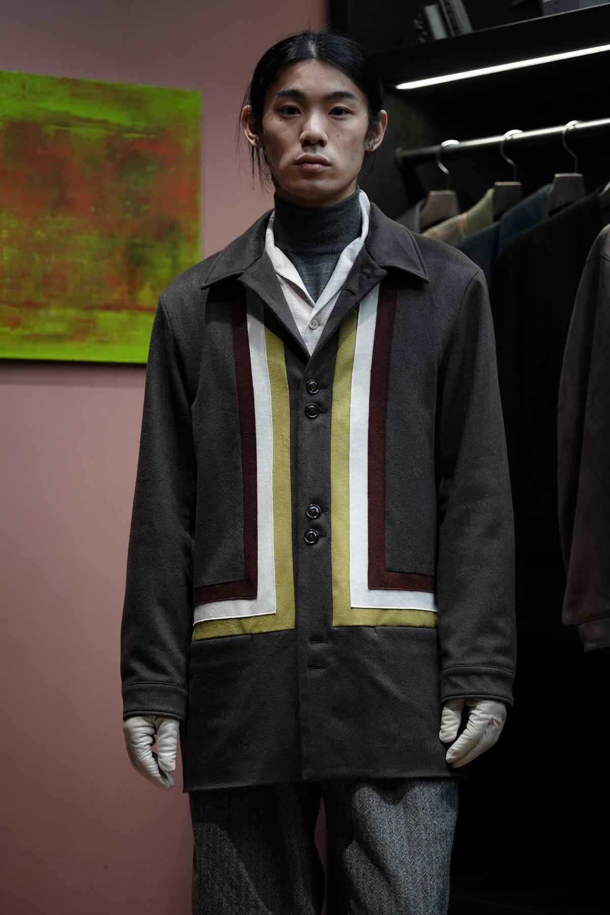 STEAFの1stコレクションで登場し発売と同時に完売したGRADATION COATを、再構築した特別なアイテム。ベースの生地にはイタリア・プラトー産地にあるメーカー「MTR」のPURE CASHMERE 100%の大変希少な素材をビーバー仕上げし使用し、配色部分にはSTEAFの25AWのテーマである「Himno Andino」からイメージした配色のウールをセレクト。身頃裏地は贅沢にもSILK 100%の裏地で仕立て、袖裏は袖通りの引っかかりを考慮し最高級ベンベルグを使用して仕立てた。そしてパターンは発売から4年経ったGRADATION COATをベースに今着たいと思うシルエットを求めてSTEAFらしく立体的に引き直し上質な着心地を追求した。