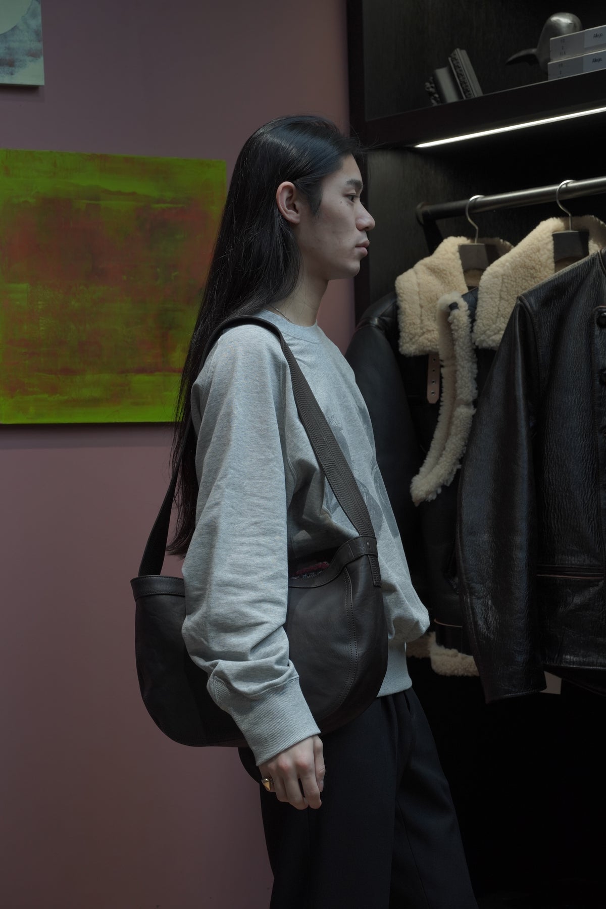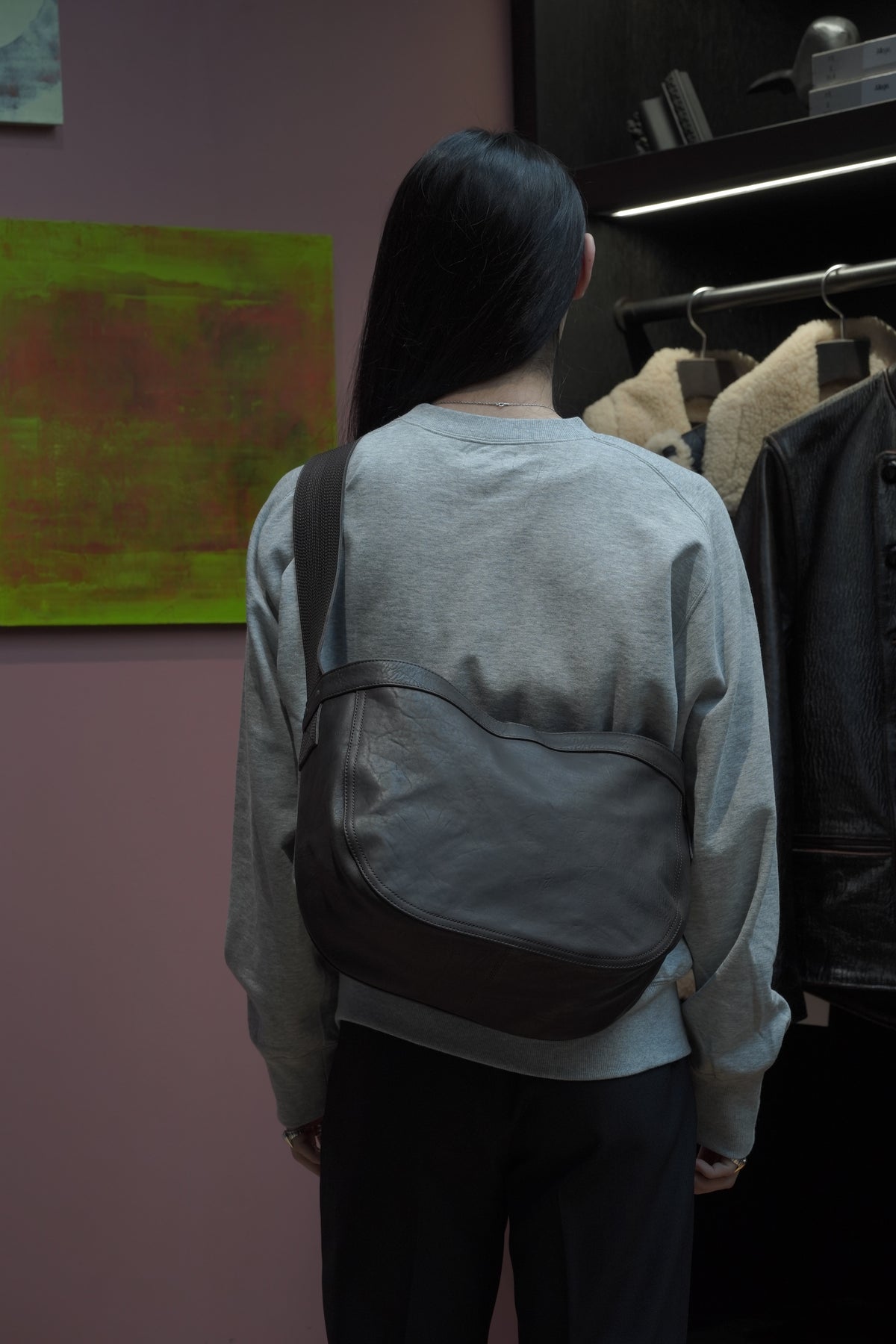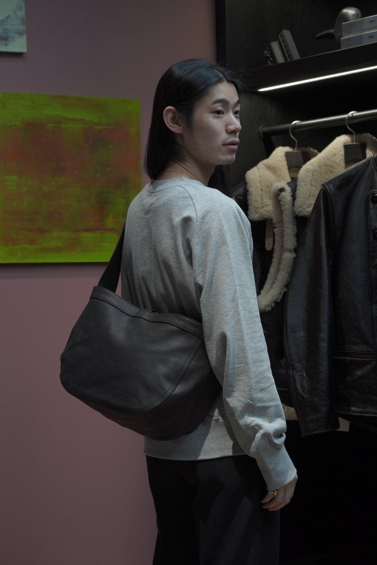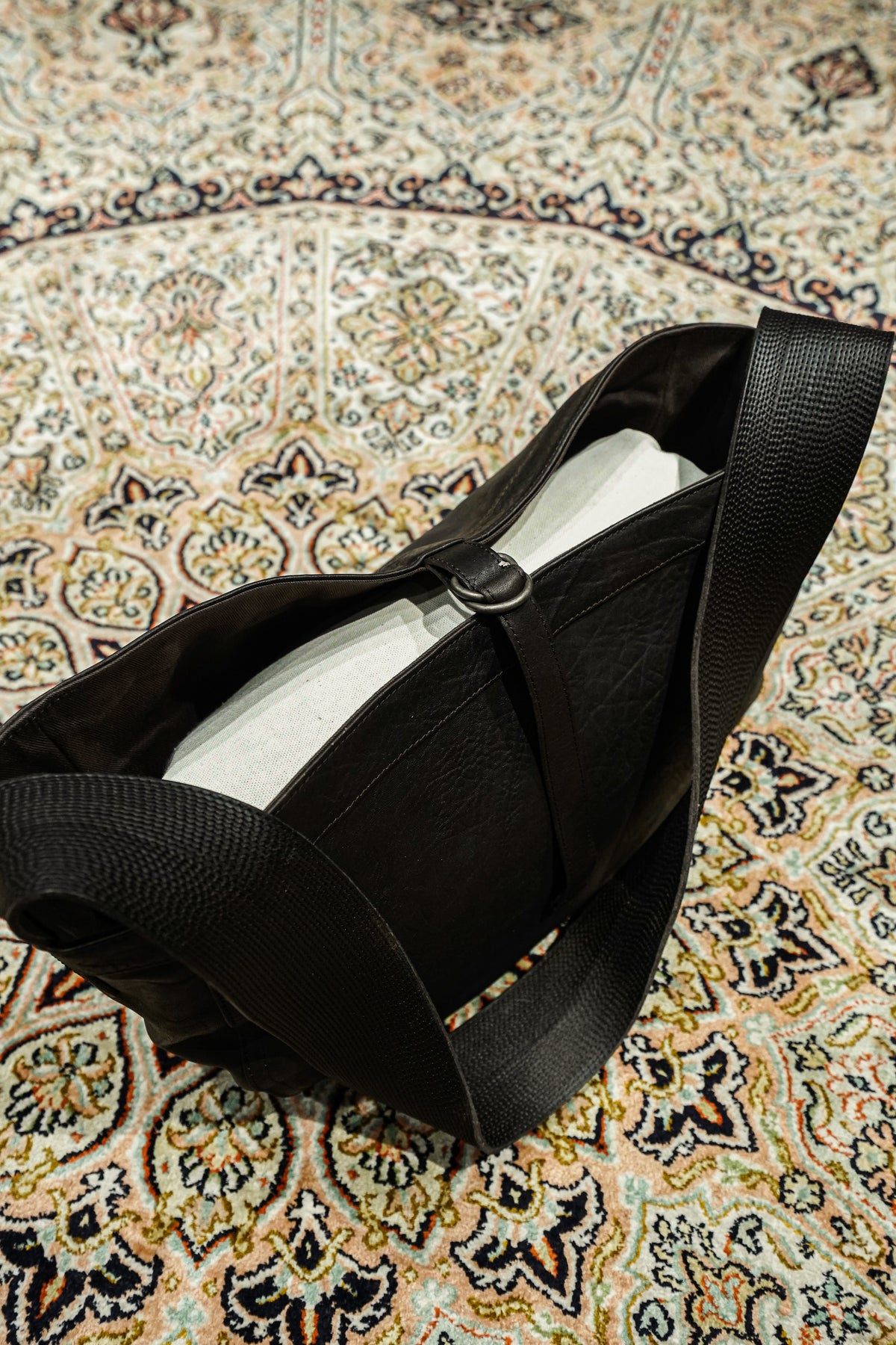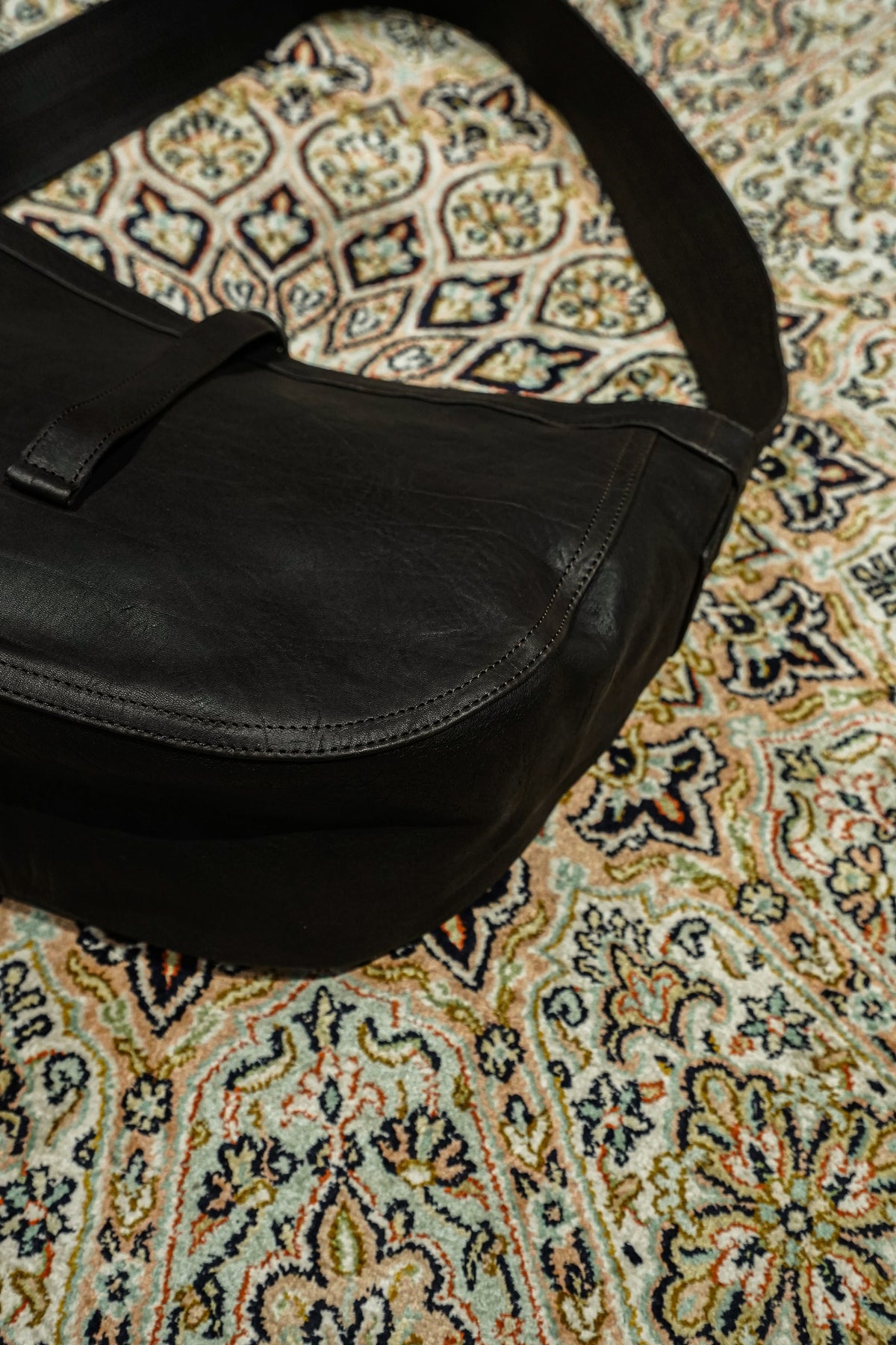 Newsboy Bagを馬革で作成したレザーバッグ。象徴的な、ショルダーハンドルの緻密なステッチも完全再現した。ポーランド製の原皮をイタリアでべジタブルタンニングした馬革を使用している。さび加工を施した鉄製パーツが素材に負けない存在感を作り出している。