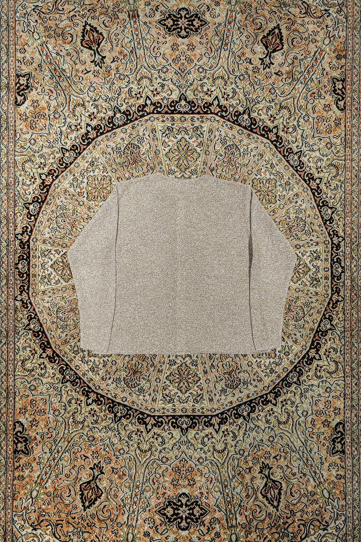 パターンは全ての線を人体に馴染むように立体的に数mm単位で曲線に引いている。色鮮やかな3色杢の色味の合わせと天然の貝ボタンでワークディティールをSTEAFらしく品があるように落とし込んでいます。